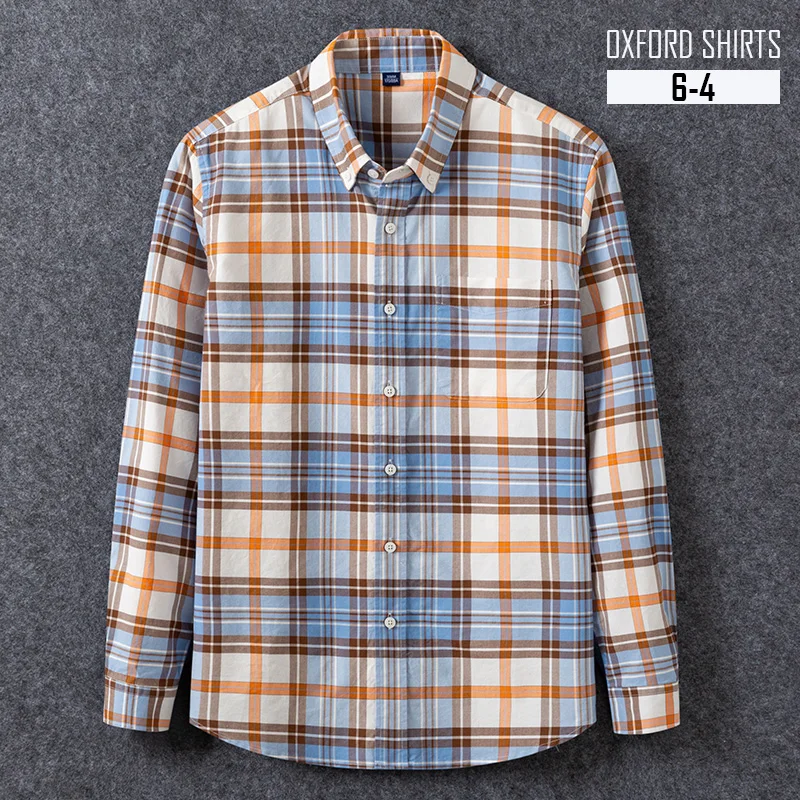 Рубашка мужская в клетку, с длинным рукавом, на пуговицах, из натурального хлопка