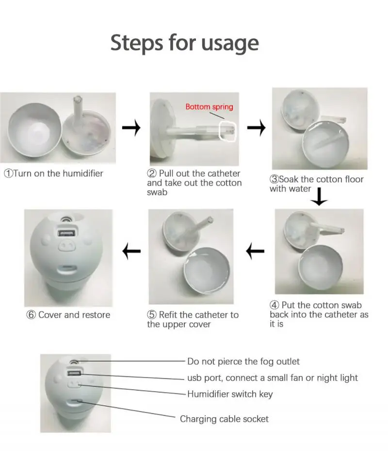 Холодный туман: безопасно увлажняет воздух до 8 часов непрерывной работы, так что вы можете легко дышать и получить более спокойный сон.