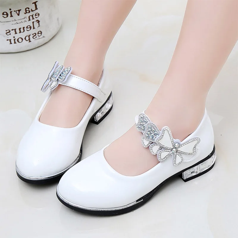Туфли для девочек, белые свадебные туфли, туфли принцессы, бабочки, Туфли Мэри Джейн для девочек, праздничные туфли на низком каблуке, От 1 до 13 лет
