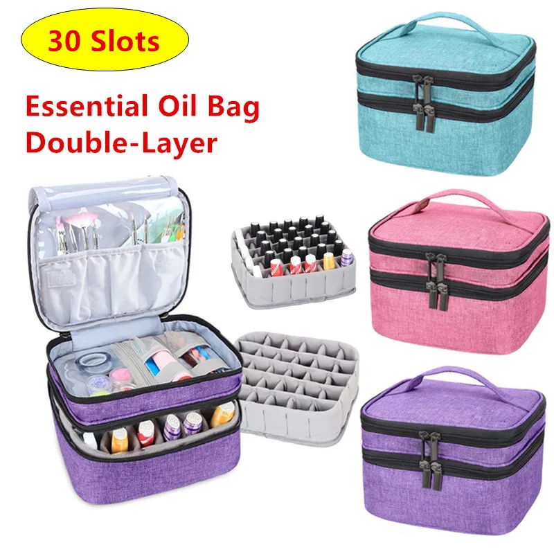 Моющаяся Портативная сумка для хранения эфирных масел с 30 отделениями, портативная двухслойная коробка для хранения лака для ногтей, органайзер для макияжа, чехол для переноски