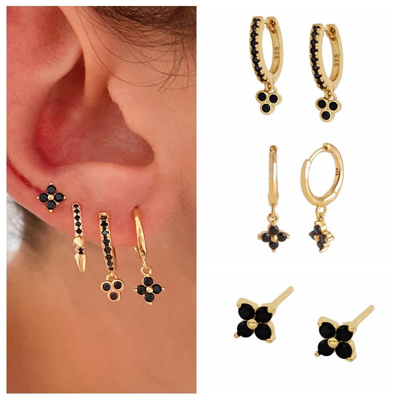 100% Настоящее Серебро S925 пробы, изящные серьги из черного циркония для мужчин и женщин, серьги-гвоздики с хрящами oorbellen zilver 925