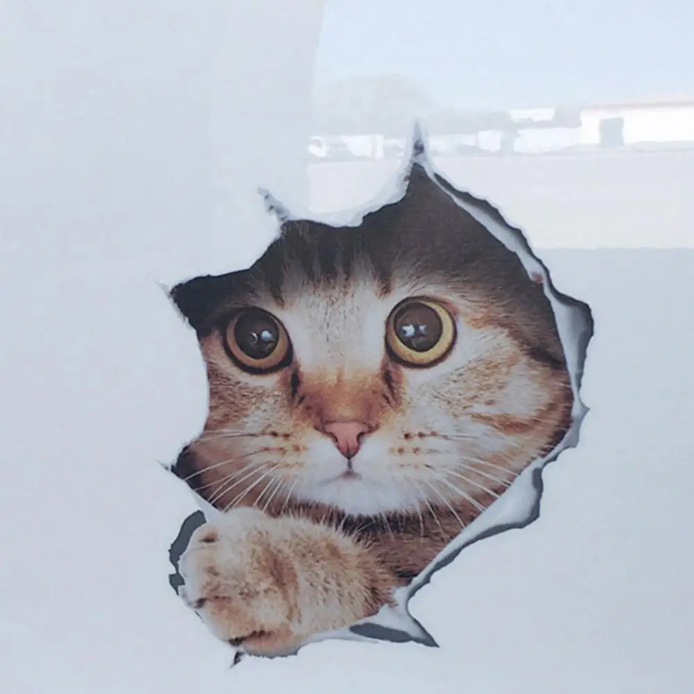 Крутая креативная наклейка с 3d-эффектом для автомобиля, водостойкий, не выцветающий, ПЭТ, милый кот, наклейка для автомобиля, аксессуары, товары