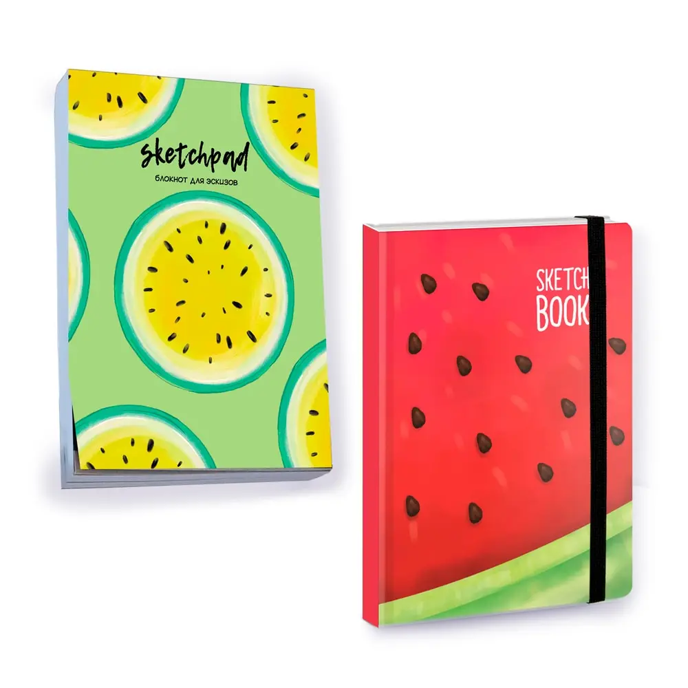 Скетчбук А5. Арбуз-1+Скетчпад А5. Яркие Арбузы (Комплект из 2 блокнотов) Проф-Пресс