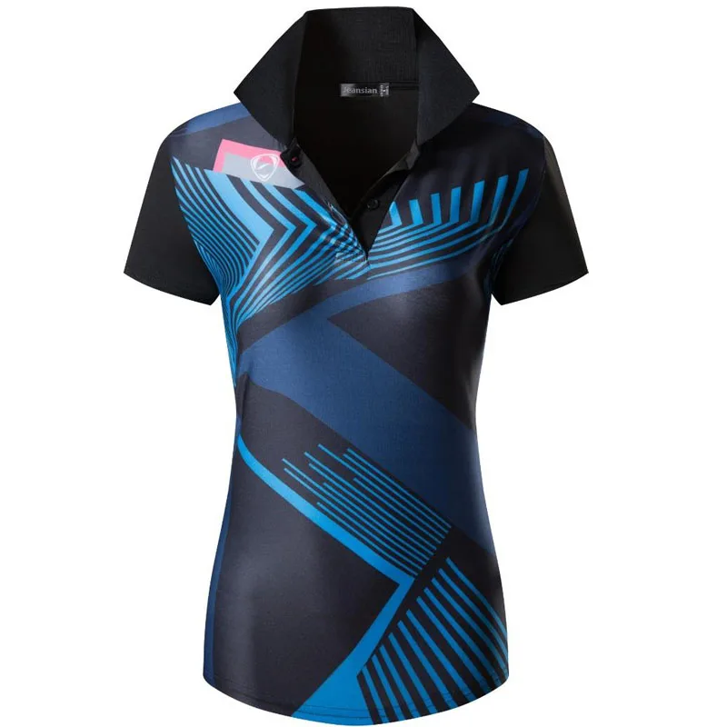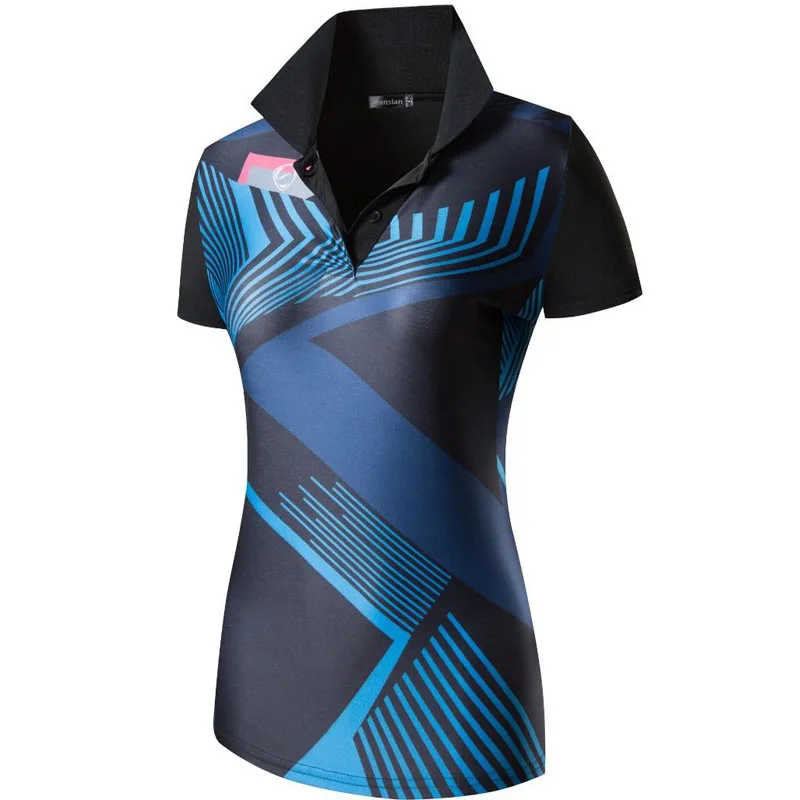 Модная женская футболка jeansian, Повседневная футболка-поло с коротким рукавом и принтом, черная футболка для гольфа, тенниса, бадминтона SWT316