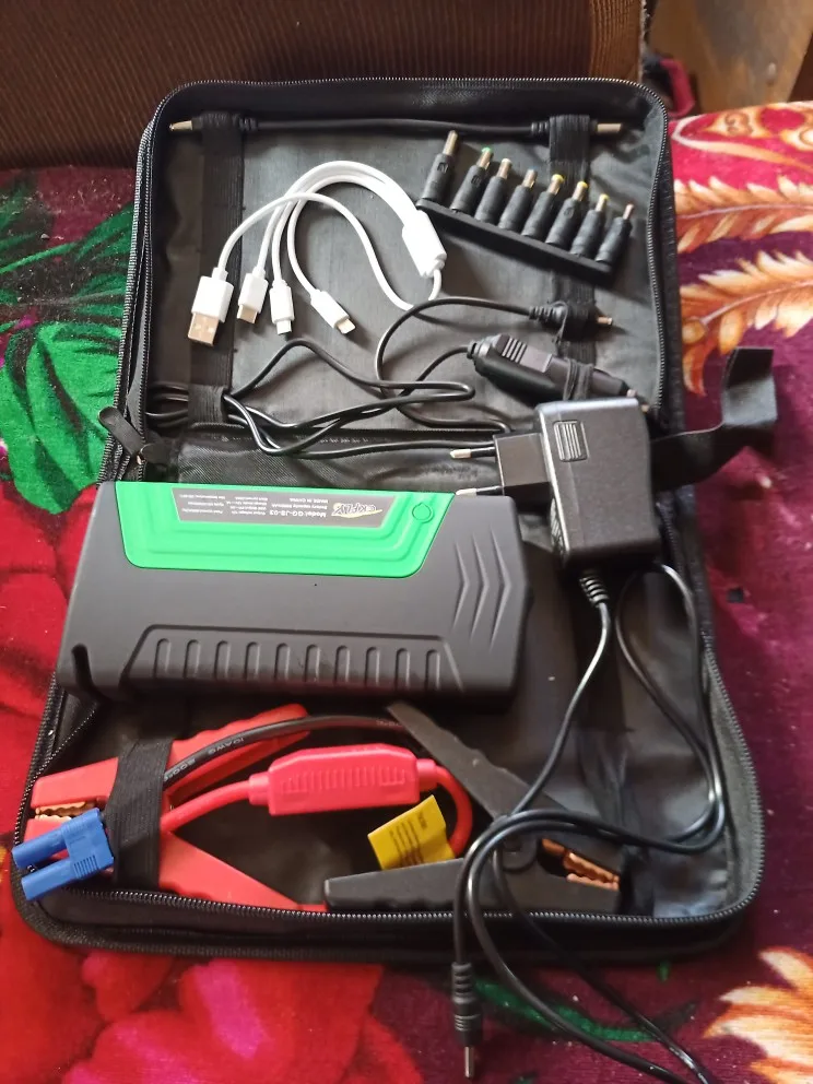 Отличный демпфер, брал как повербанк машину не пробовал завести,есть много переходников как зарядное от сети так и в машине, кабель для зарядки от него 3 в 1 в телефон. Продовца рекомендую, доставка из Москвы 3дня с момента заказа, здесь по месту больше шло.