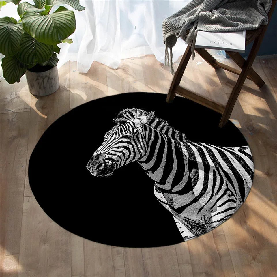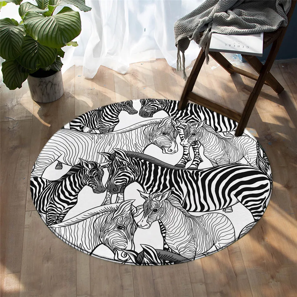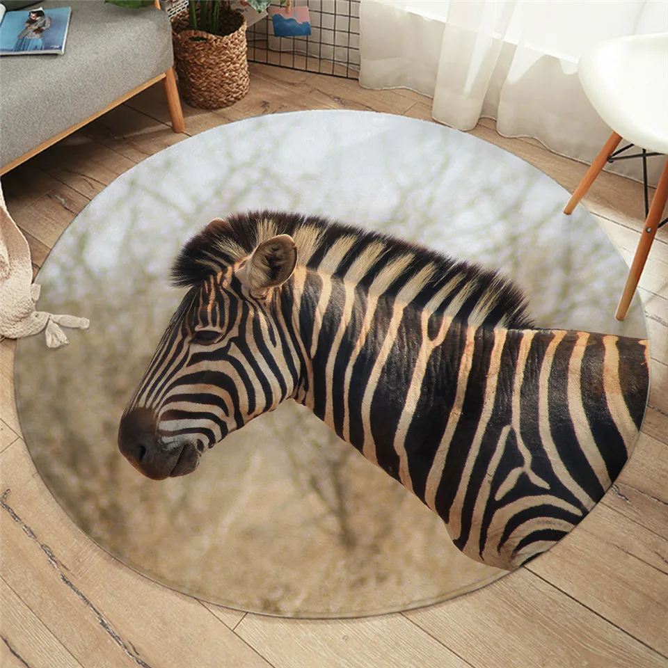 Постельные принадлежности, Зебра, напольный коврик для спальни, дикие животные, круглый ковер, черный, белый, коврик, нескользящий, милый, для гостиной, Alfombra, 100 см