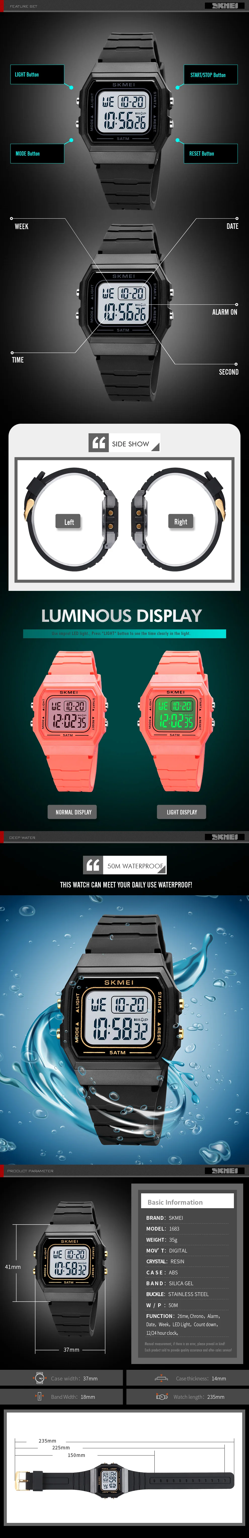 SKMEI цифровые часы модные спортивные электронные часы отсчет вниз ...