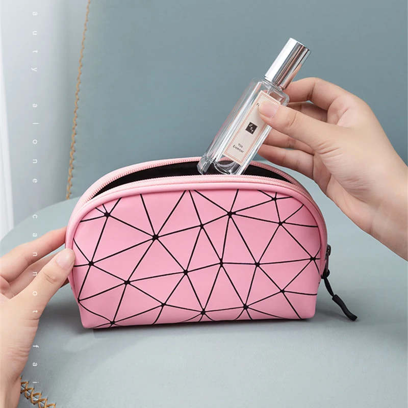 Водонепроницаемый чехол для хранения косметики, полукруглая Женская сумочка с ромбами, дорожный органайзер для косметики, Несессер для туалетных принадлежностей
