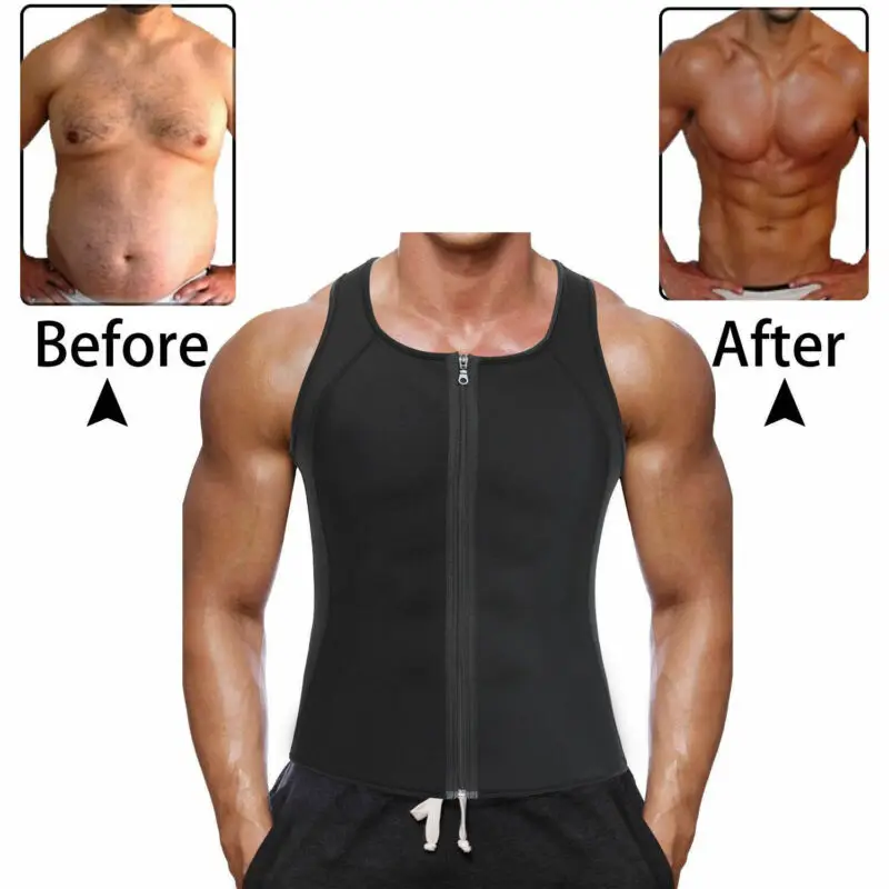 Мужской тренировочный жилет, корректирующая рубашка, утягивающий костюм для сауны, потеря веса, черное Корректирующее белье, ультра неопреновый тренажер для талии