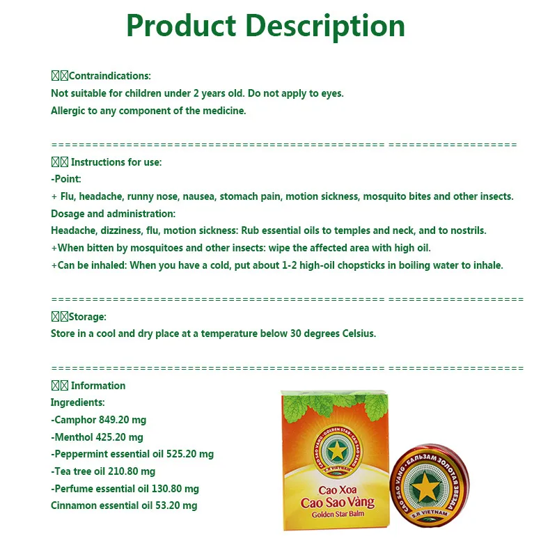 100% Golden Star тигровый бальзам рельеф головная боль в виде головы тигра, ментол бальзам освежающее во Вьетнаме головной боли головокружений насекомых жало