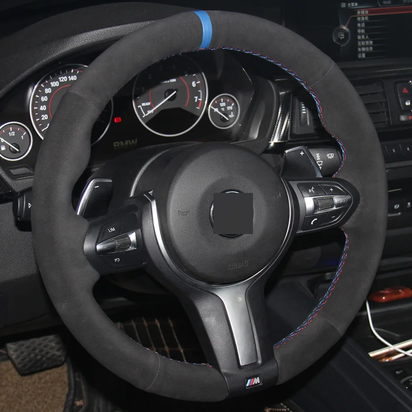 Черная замша маркер чехол рулевого колеса автомобиля для BMW M Spor...