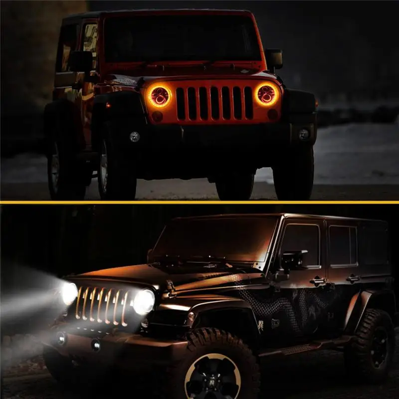 7 дюймовые светодиодный фары многофункциональные-ореол может быть белым или янтарным. Янтарь предназначен для сигнала поворота; Белый-Для DRL.