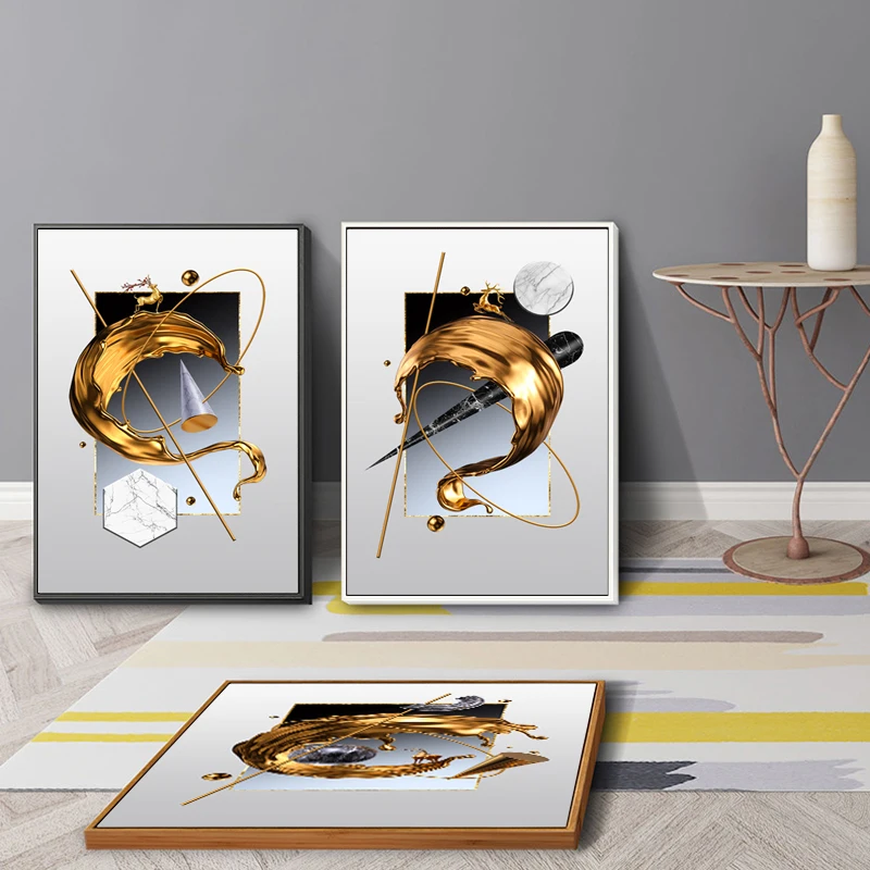 Абстрактное Золотое искусство, холст, постеры и принты в скандинавском стиле, Современная Настенная картина для гостиной, домашний декор