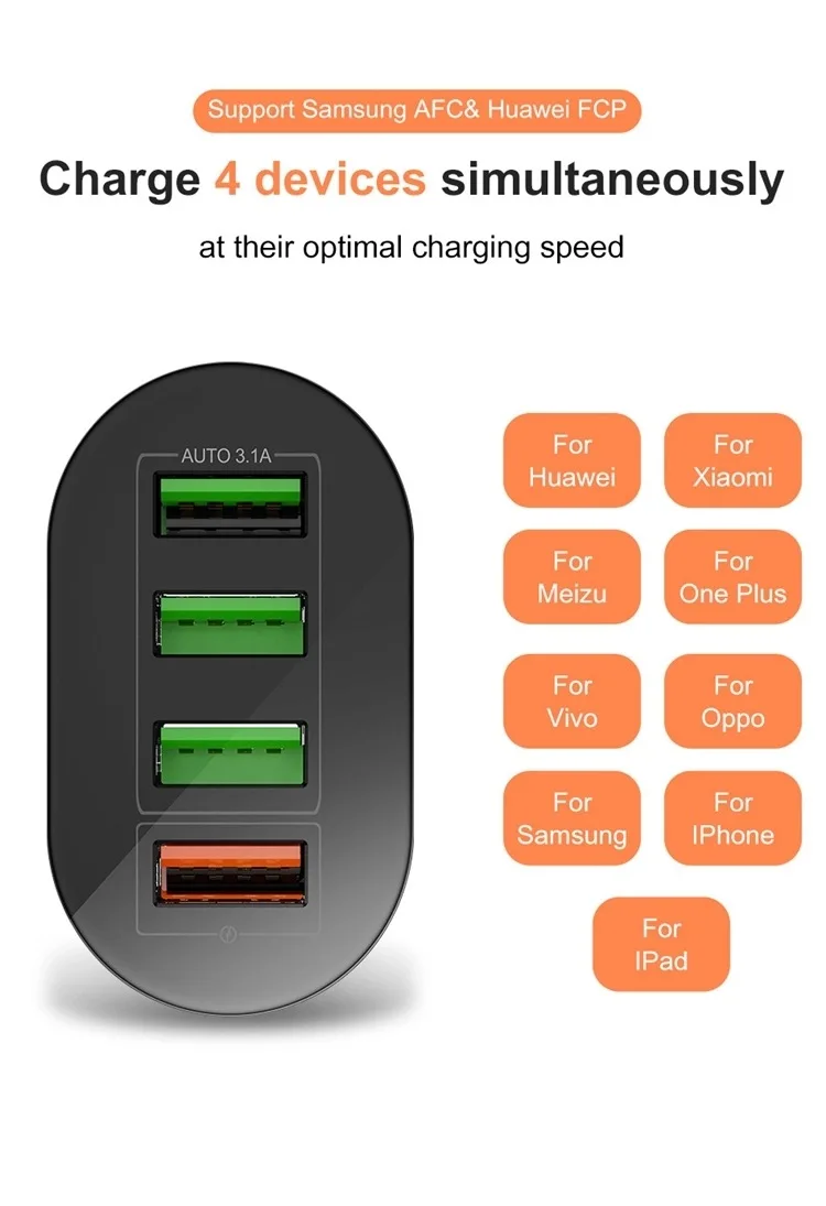 Uslion мобильный телефон зарядное устройство адаптер питания многопортовый Европейский регулировочный зарядная головка USB стандарт 3A Быстрая зарядка головка
