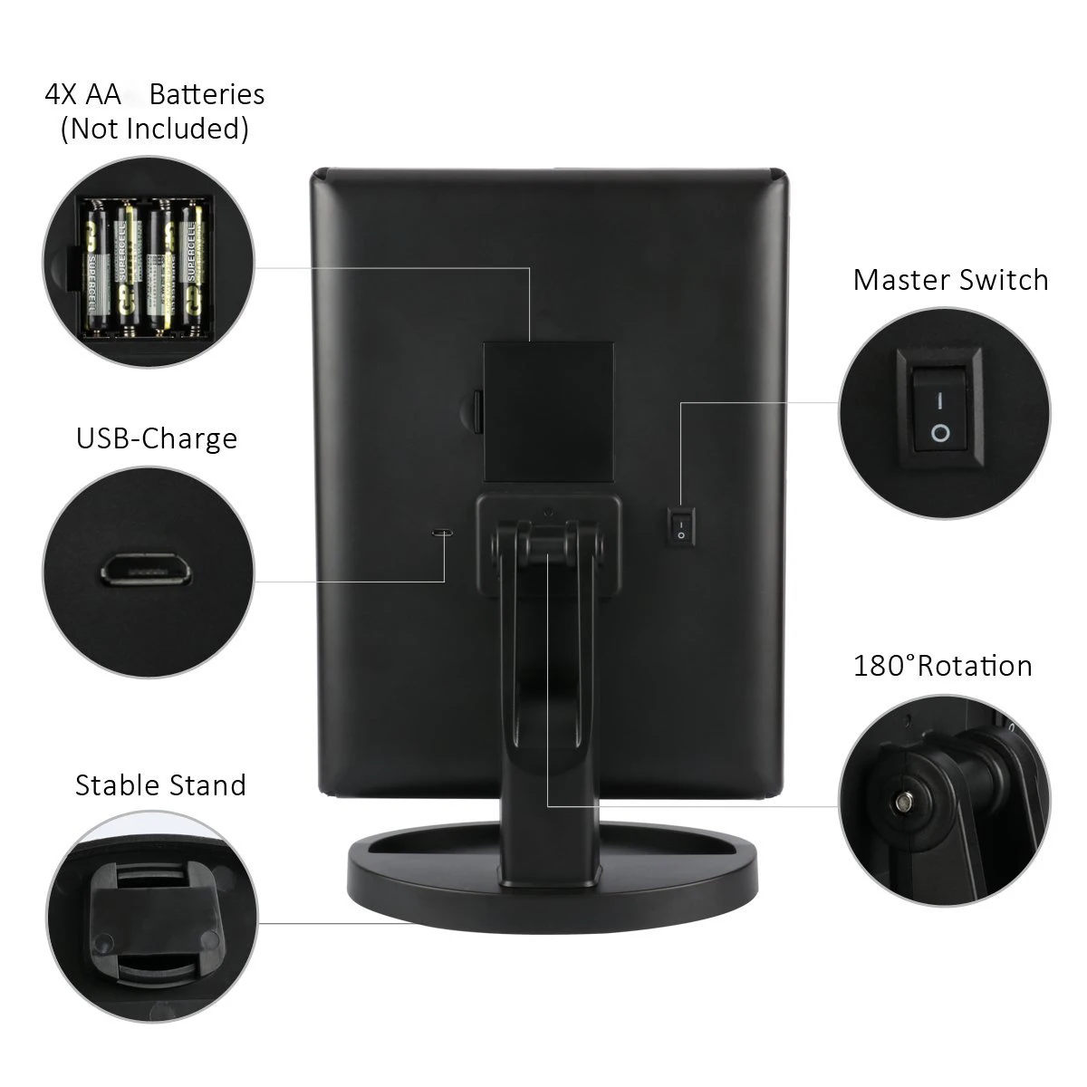 Зеркало для макияжа складное регулируемое настольное с сенсорным экраном, 22 светодиодный, увеличение 1X2X3X10X