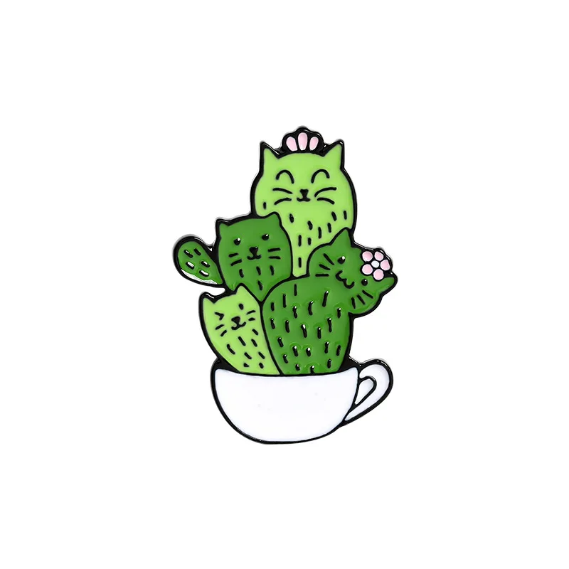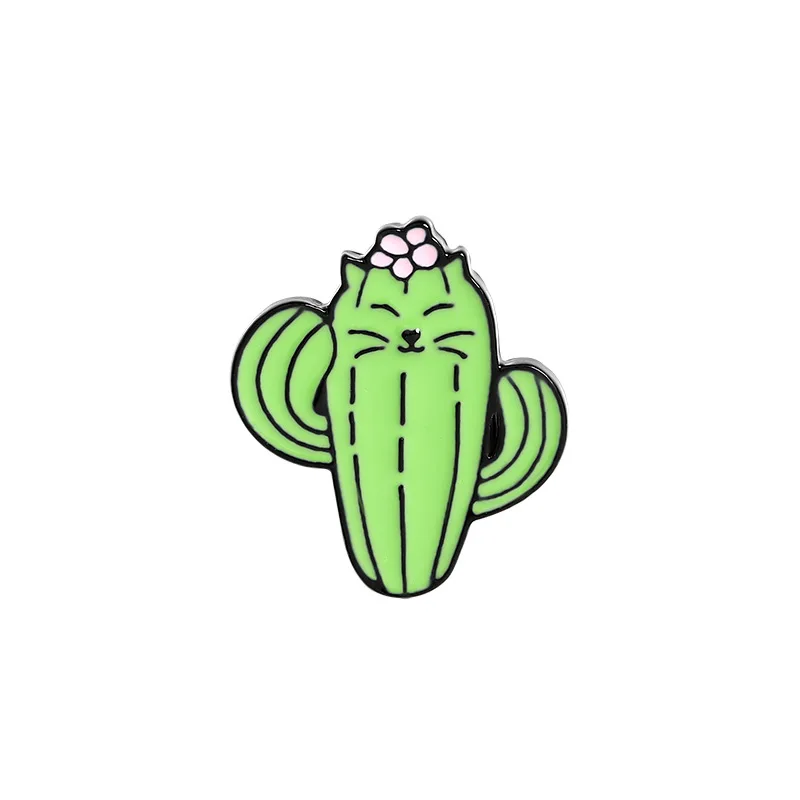 Эмалированные булавки с изображением милого кактуса кота и зеленых горшечных растений, Мультяшные милые булавки для рубашек и шляп для детей, детские ювелирные изделия, аксессуары