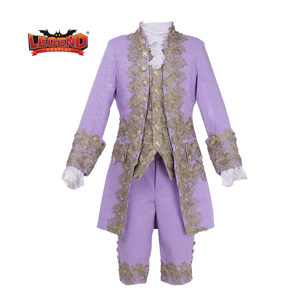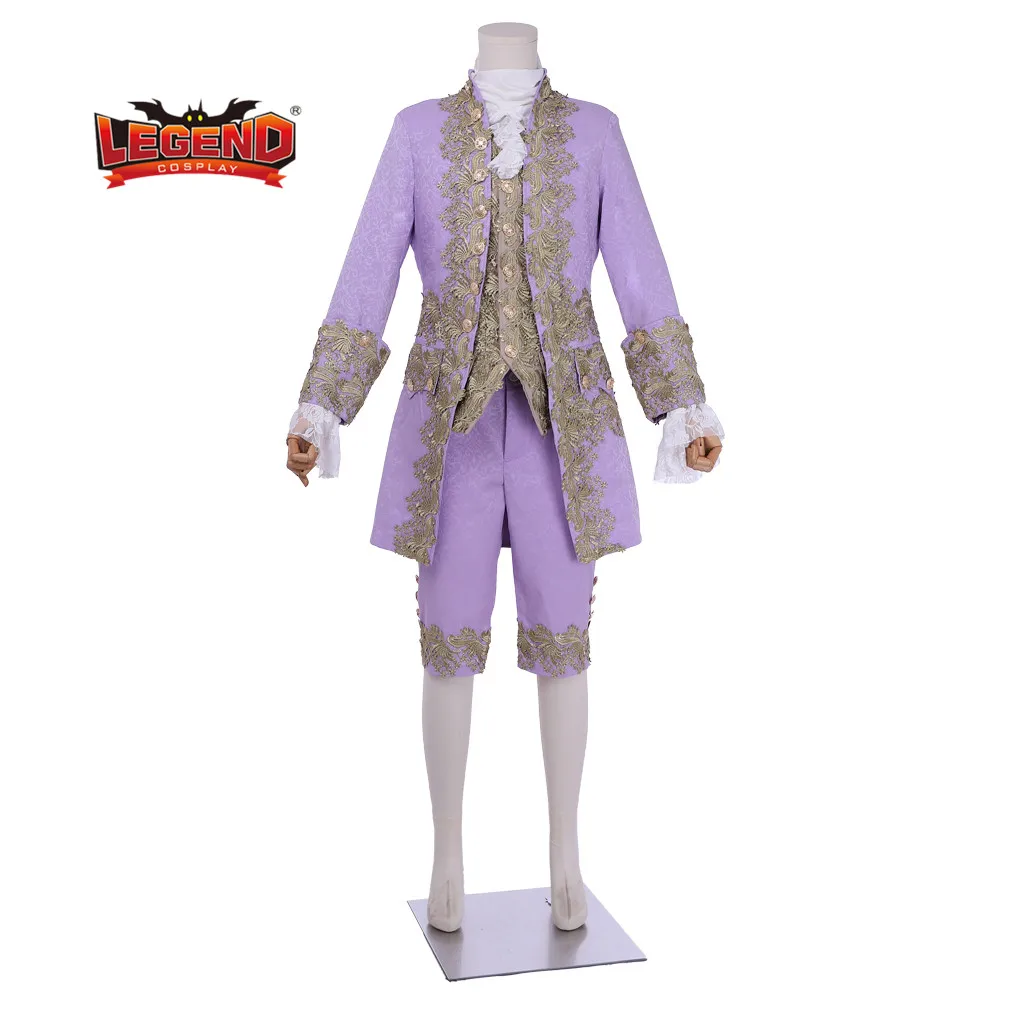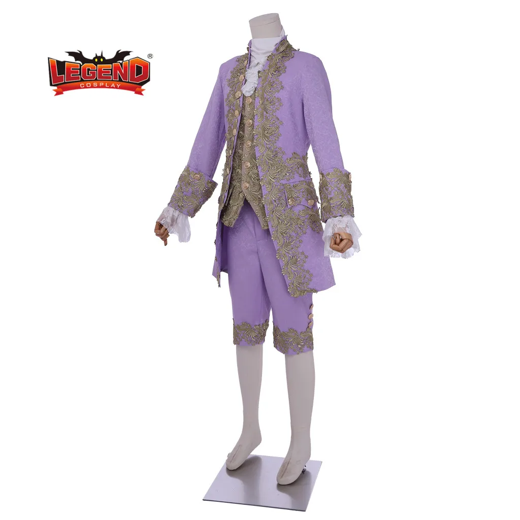 Элегантный мужской наряд 18 века, костюм для суда, рококо, костюм для суда, в колониальном викторианском стиле, фиолетовый наряд на заказ