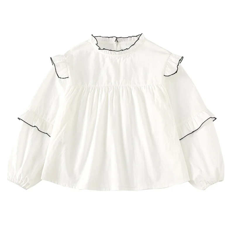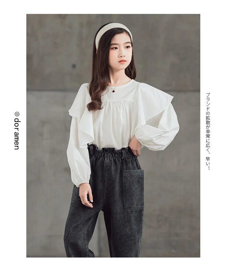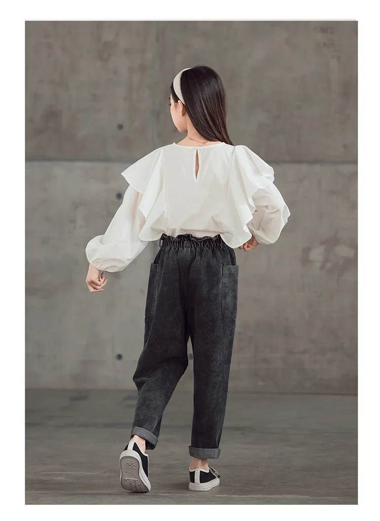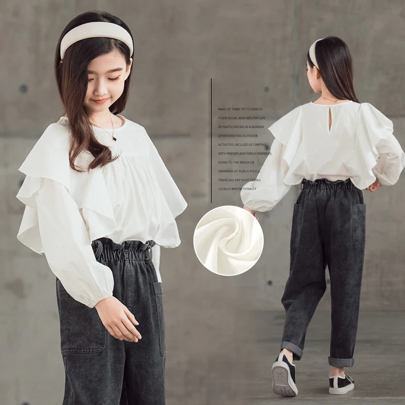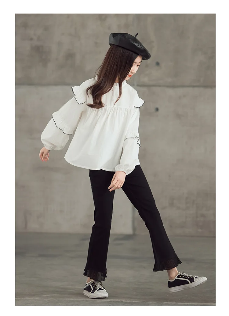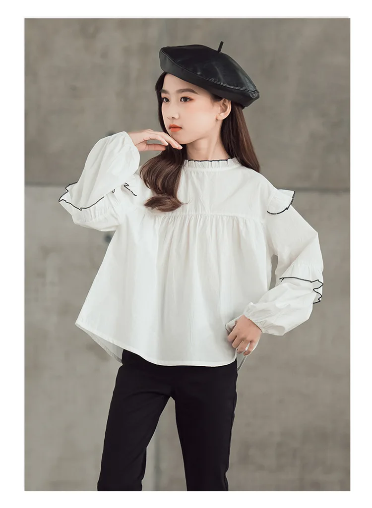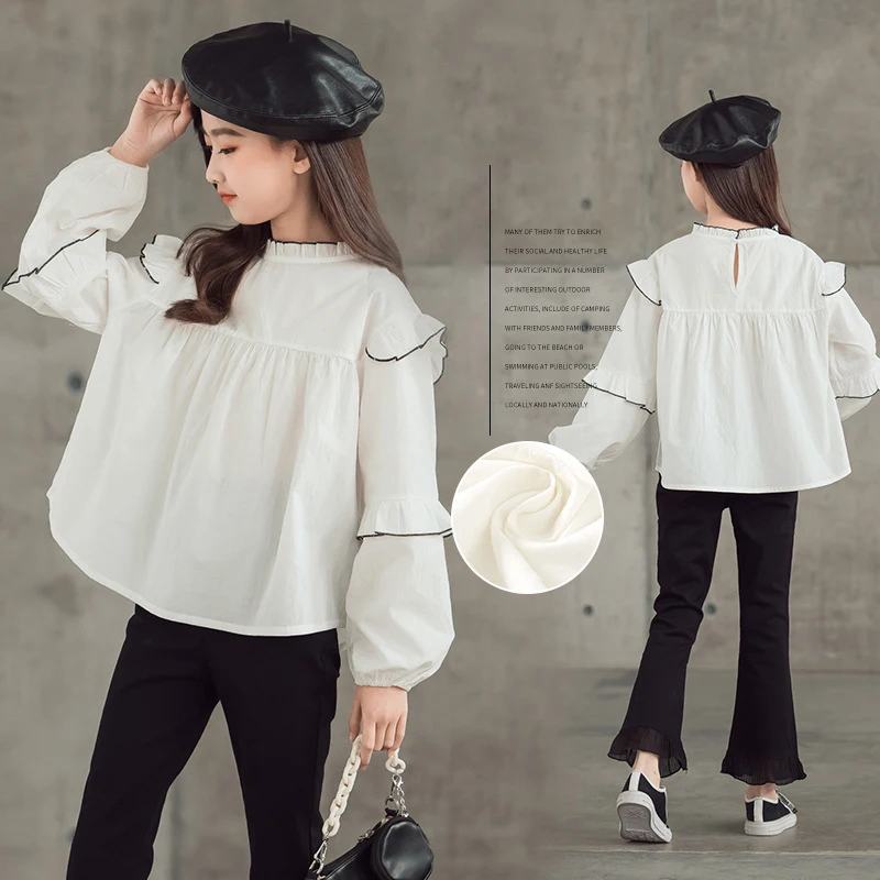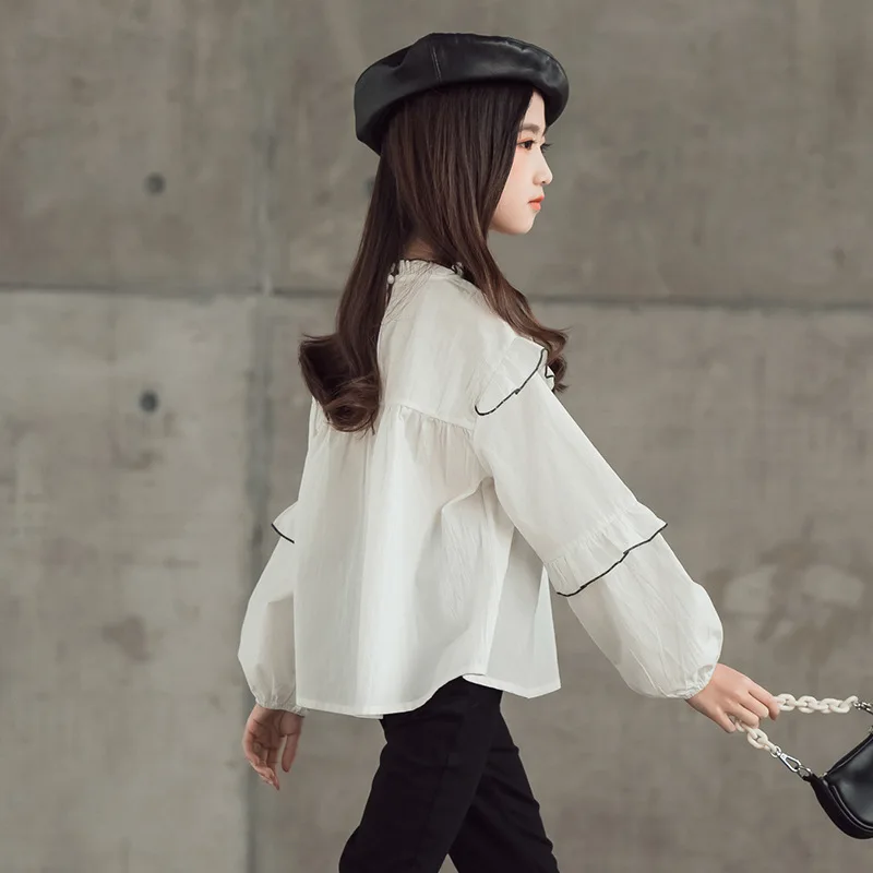 Рубашки для девочек-подростков, детская блузка Новинка 2022 года, весенние белые блузки с рюшами детская одежда повседневные топы для детей 8, 10, 12 лет