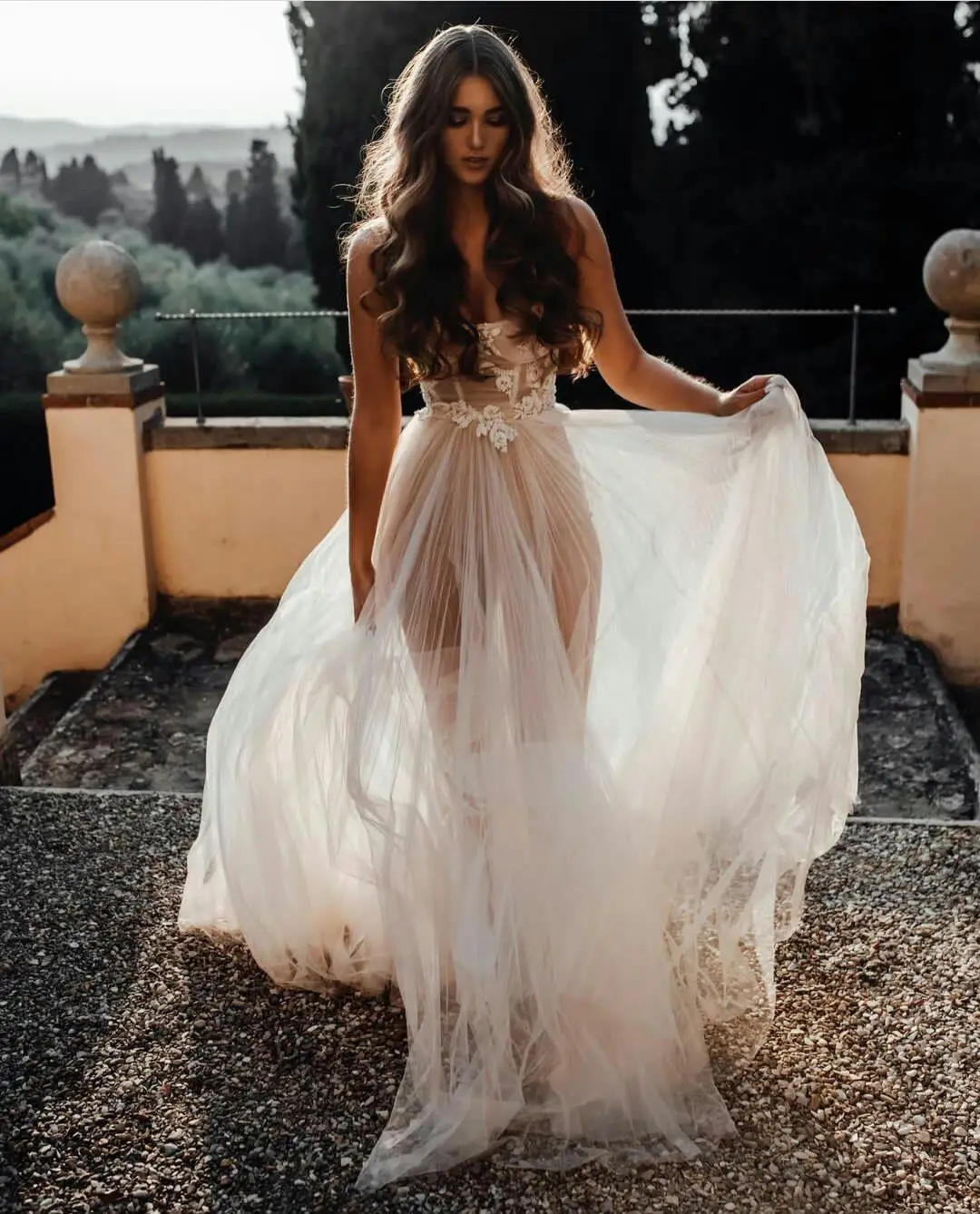 Нежное кружевное свадебное платье в стиле бохо, облегающее платье невесты на тонких бретелях-спагетти в стиле сада и страны, платье принцессы, невесты размера плюс, 2021