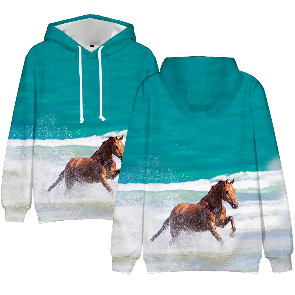 Креативный милый Детский свитшот в стиле Харадзюку С Рисунком лошади черные белые лошади 3D толстовки для мальчиков и девочек пуловер с единорогом