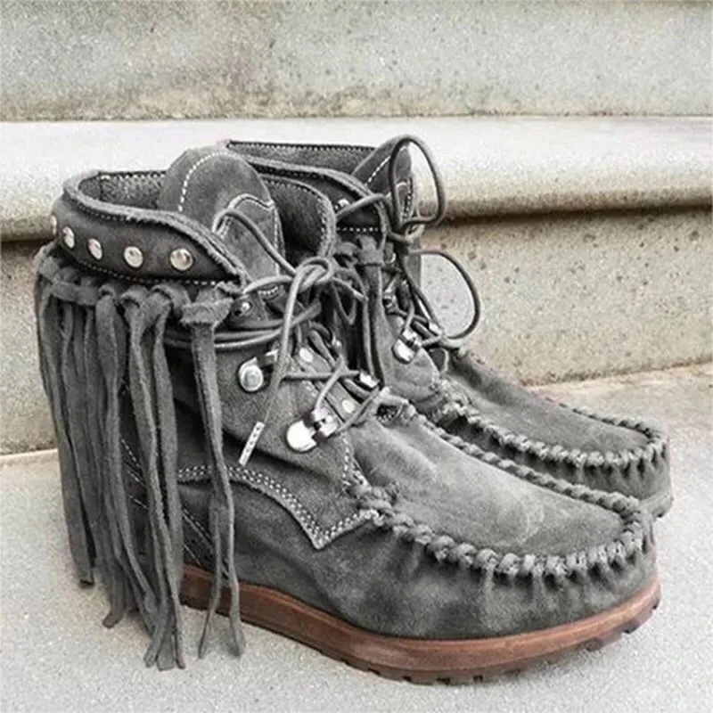 2021 г. Красивые богемные Ботинки женские этнические ботинки средней длины из искусственной замши с бахромой женские ботинки на квадратном каблуке