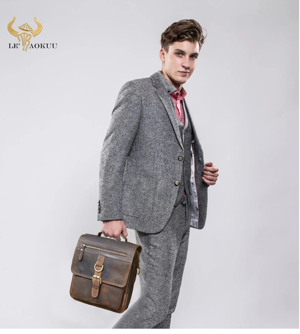 Портфель мужской из кожи Крейзи Хорс, дизайнерский школьный мессенджер на ремне, винтажная Сумка-Кроссбоди для колледжа, тоут для планшета 9,8 дюйма, ранец, 039
