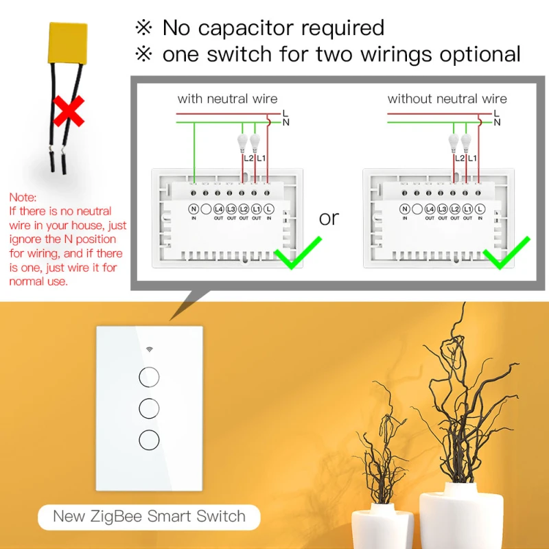 Этот новый дизайн смарт-переключатель с 1/2/3 дополнительно разработан с ZigBee протокол для того, чтобы заменить традиционные переключатели с различные способы контроля. Один переключатель для двух колец опционально (N + L провод/только L провод) и ZigBee концентратор требуется для нормального использования. Теперь одна новая функция смарт-управления (только для N + L провода) к другим смарт-переключателям-это приложение addedinto smart Life/Tuya, и все режимы управления работают без каких-либо помех. Lts дизайн подходит для различных стилей украшения с его лучшим значением.