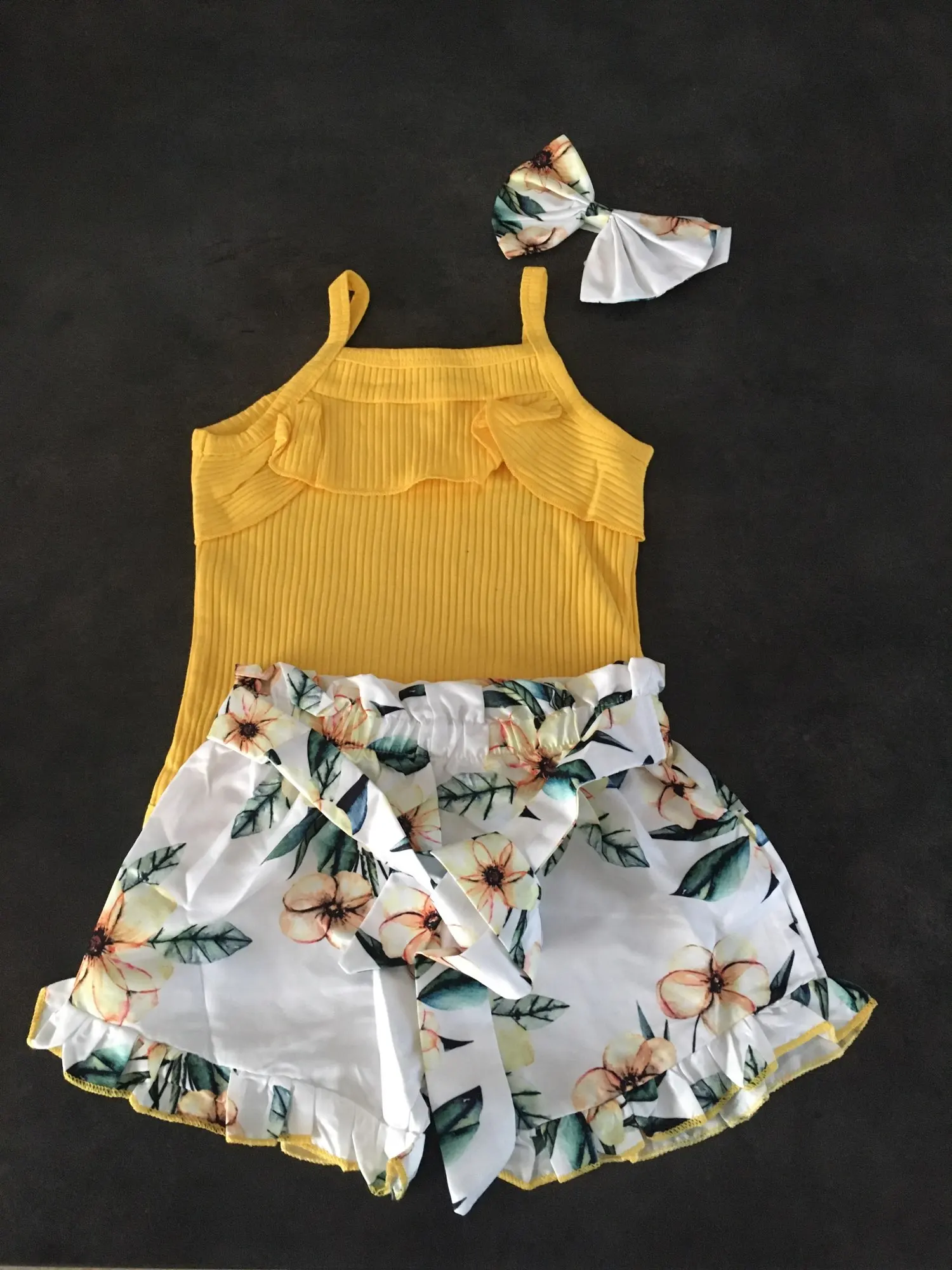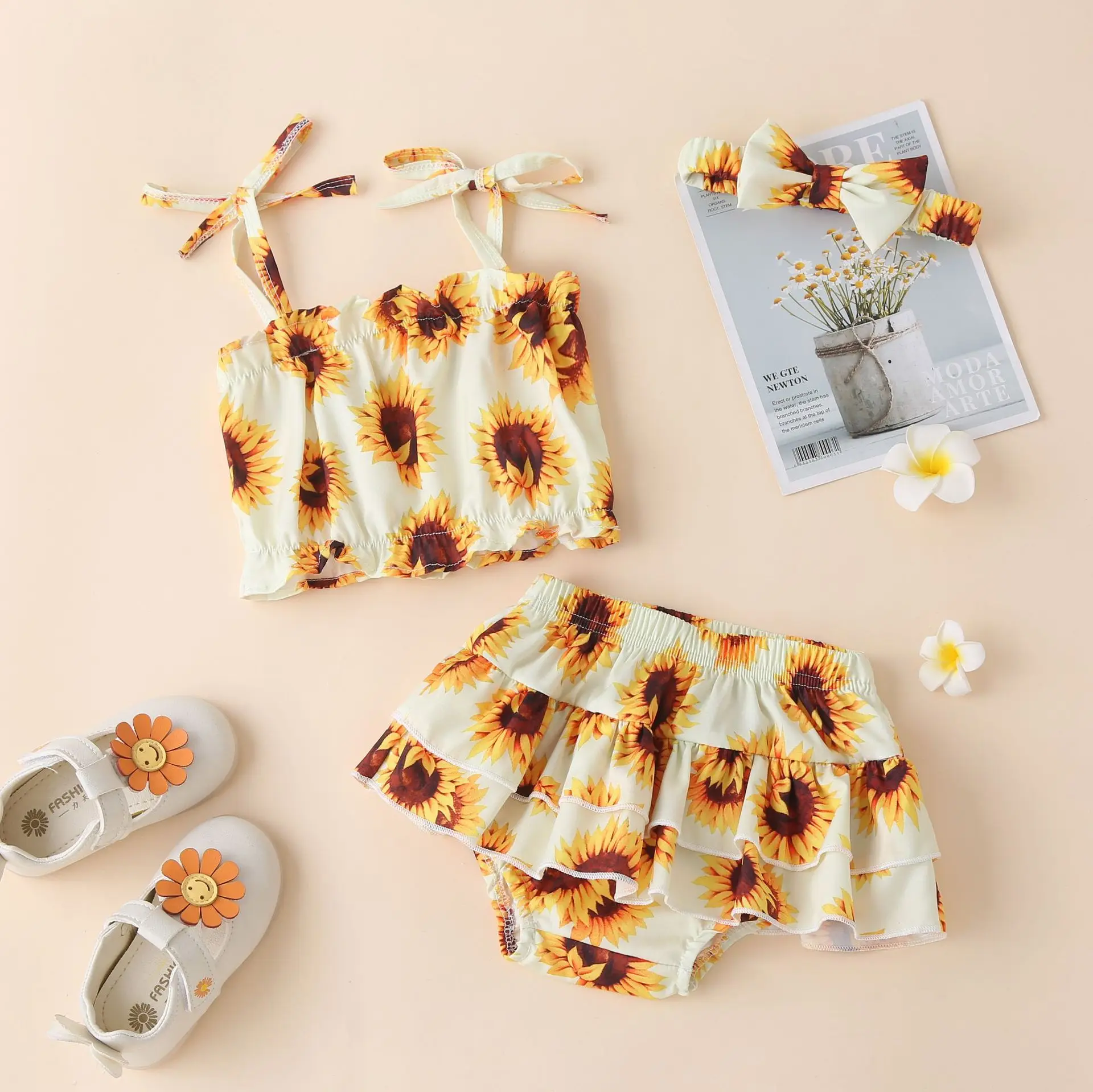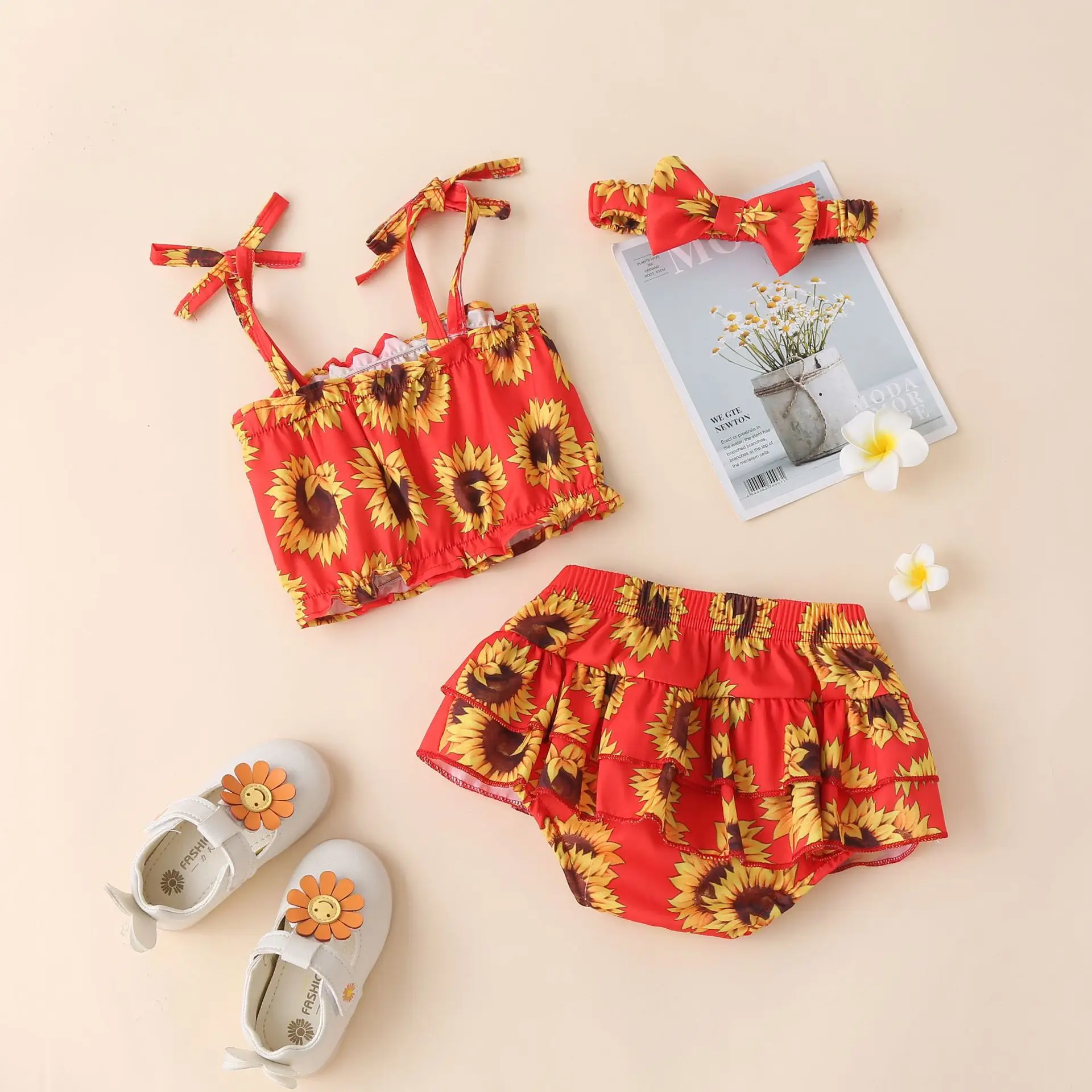 Комбинезон, шорты и повязка на голову для маленьких девочек, хлопковый, 3 шт.