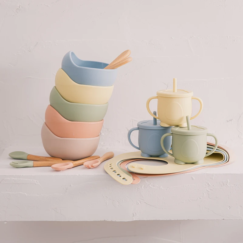 5 шт./компл., силиконовая чаша, нагрудники, посуда для малышей, BPA бесплатно, водонепроницаемая ложка, нескользящая чаша для кормления, силиконовая чаша, посуда, Товары для малышей