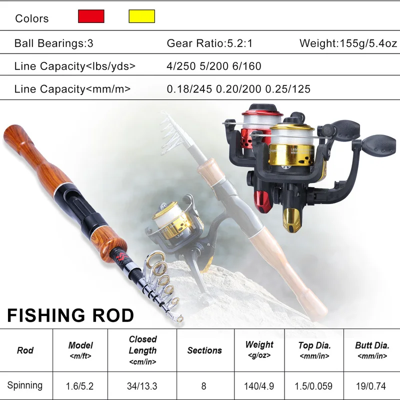 Спиннинг Sougayilang, спиннинговое удилище из углеродного волокна 1,6 м и Высокоскоростная катушка спиннинга 5,2: 1, набор рыболовных снастей