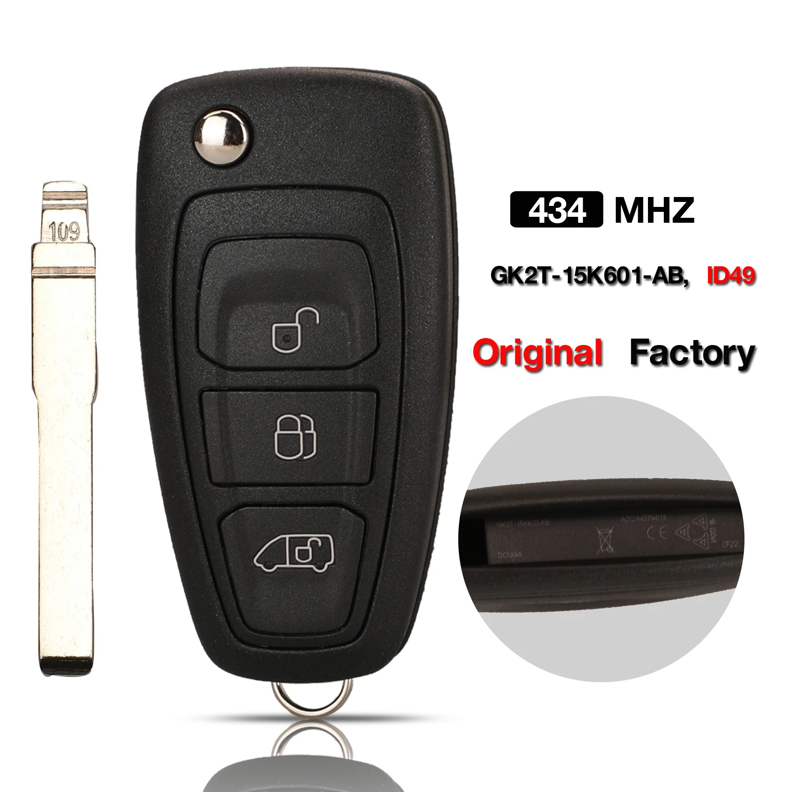 Jingyuqin 3 кнопки дистанционного ключа автомобиля 434 МГц 4d(83)id49 чип BK2T-15K601-AC,GK2T-15K601-AB для Ford Transit Custom 2014 2015 2016 +