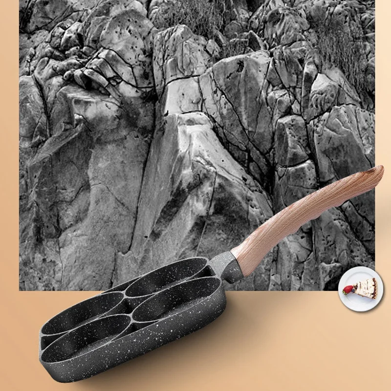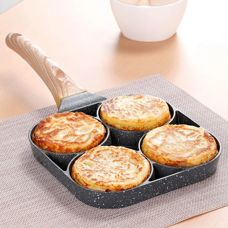 Сковорода с деревянной ручкой, 4 отверстия, сковорода для омлета дл...