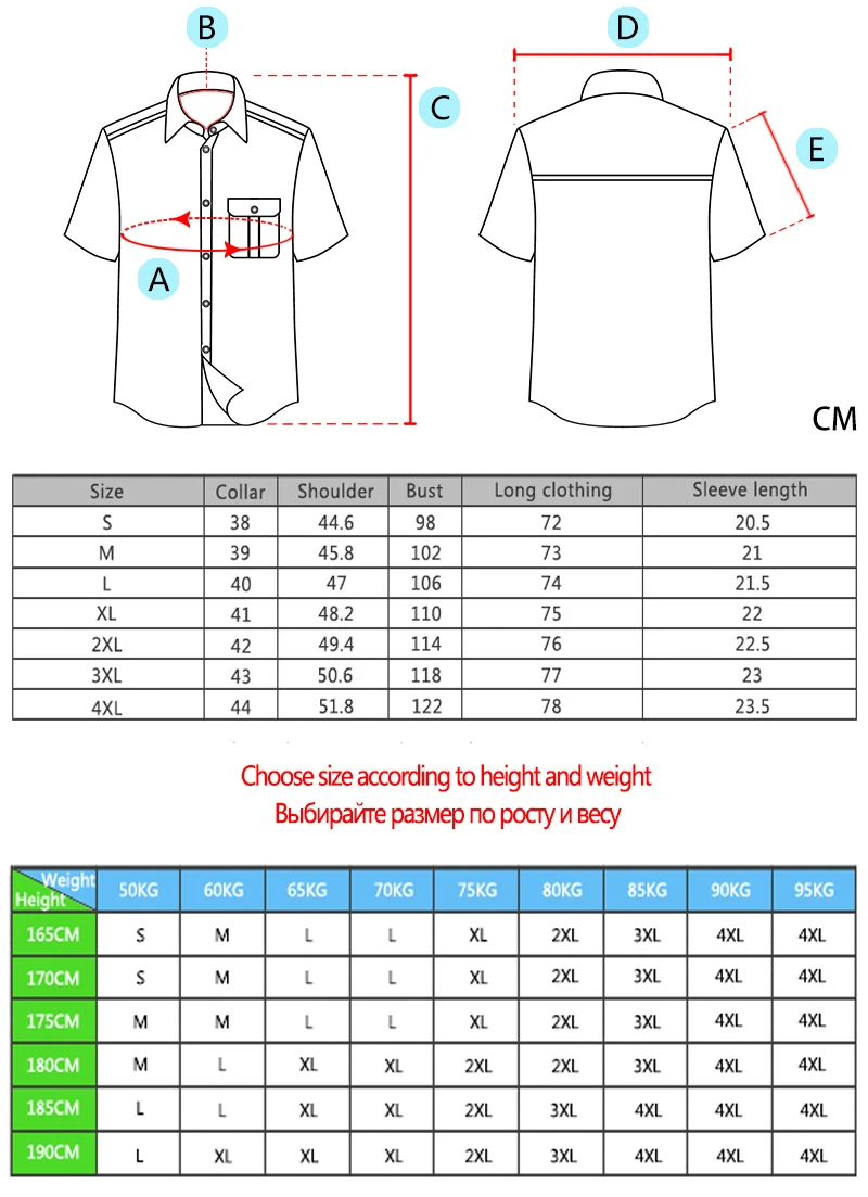 A: обхват груди B: воротник C: длина D: плечо E: рукав