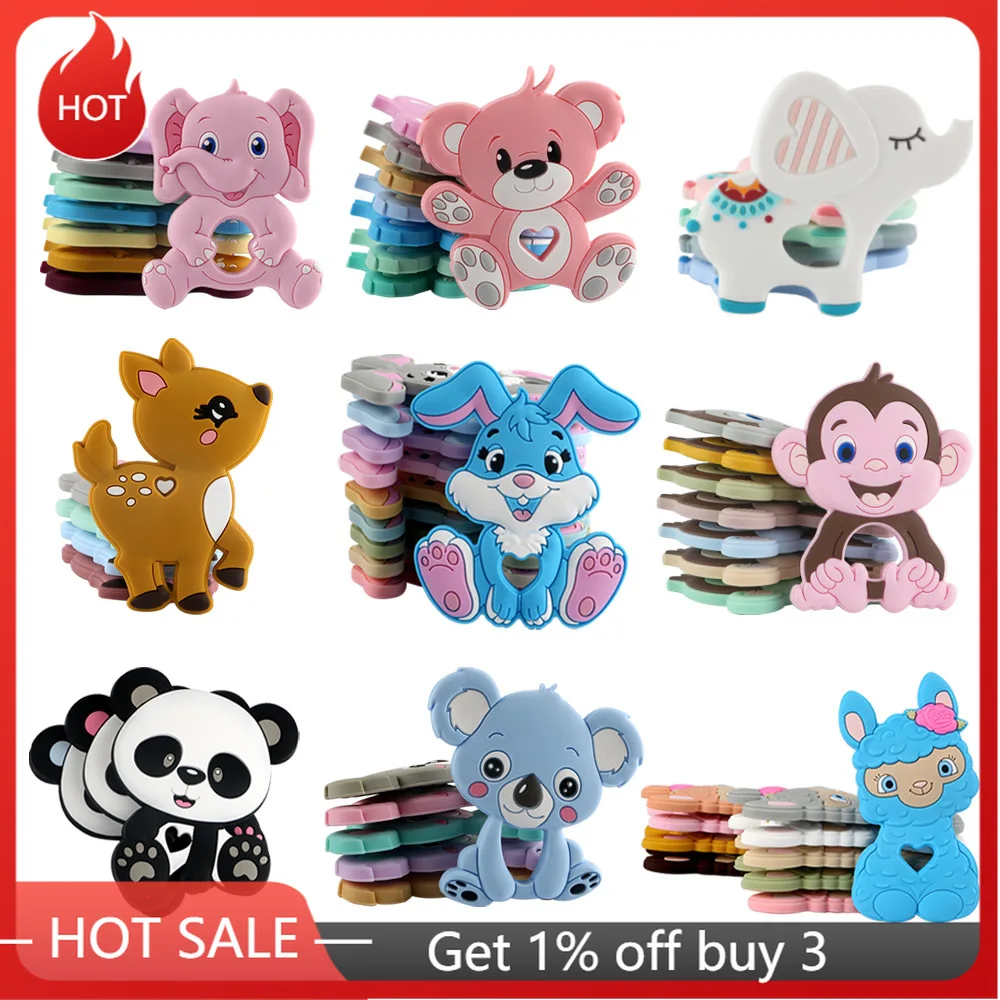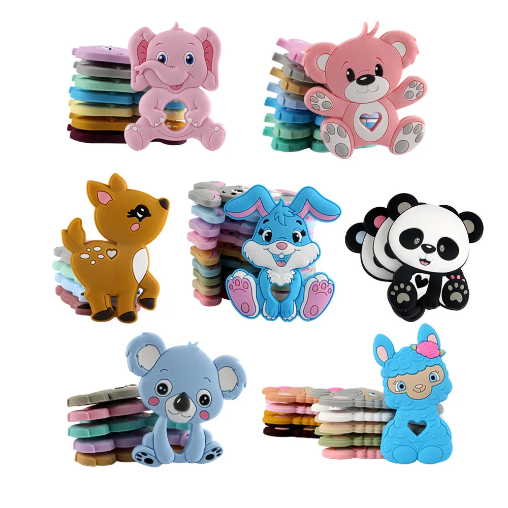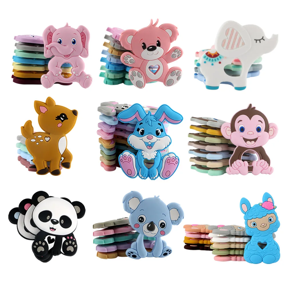 5 шт., силиконовые бусины для прорезывания зубов в виде животных