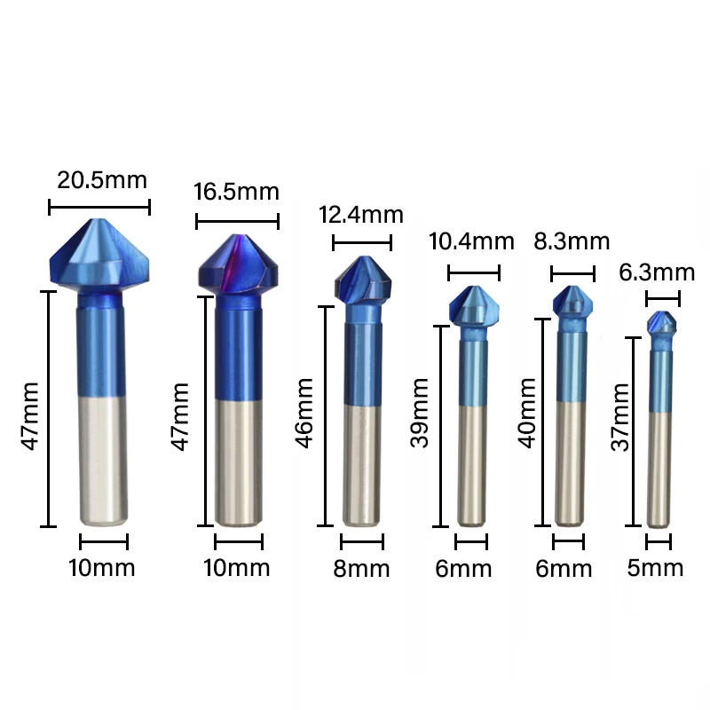 Набор сверл с зенковкой из быстрорежущей стали, 6 шт., 3 канавки, по металлу, фрезы с зенковкой под углом 90 градусов, сверла для снятия фаски по дереву