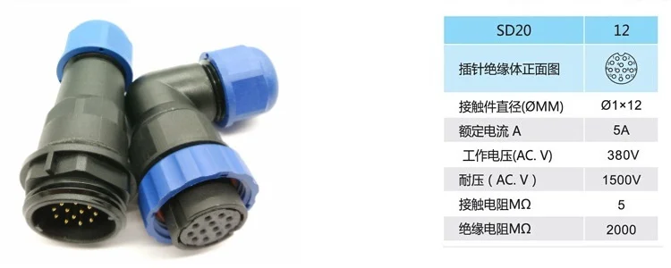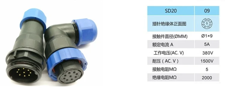 Авиационная розетка IP68 SP20, Промышленные Кабельные стыковые разъемы, L-образный водонепроницаемый разъем, 12345679101214 Pin