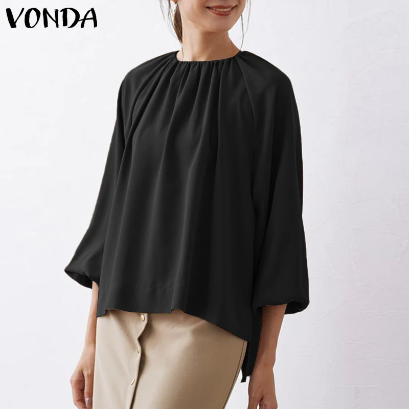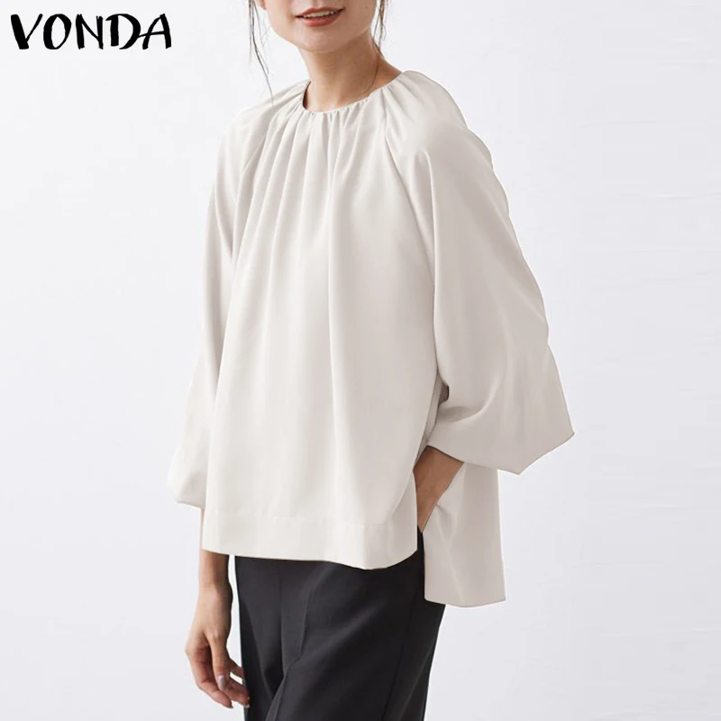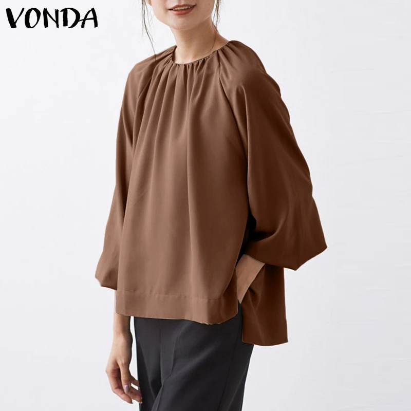 2022 вечерние рубашки VONDA, Женская однотонная блузка с длинным ру...