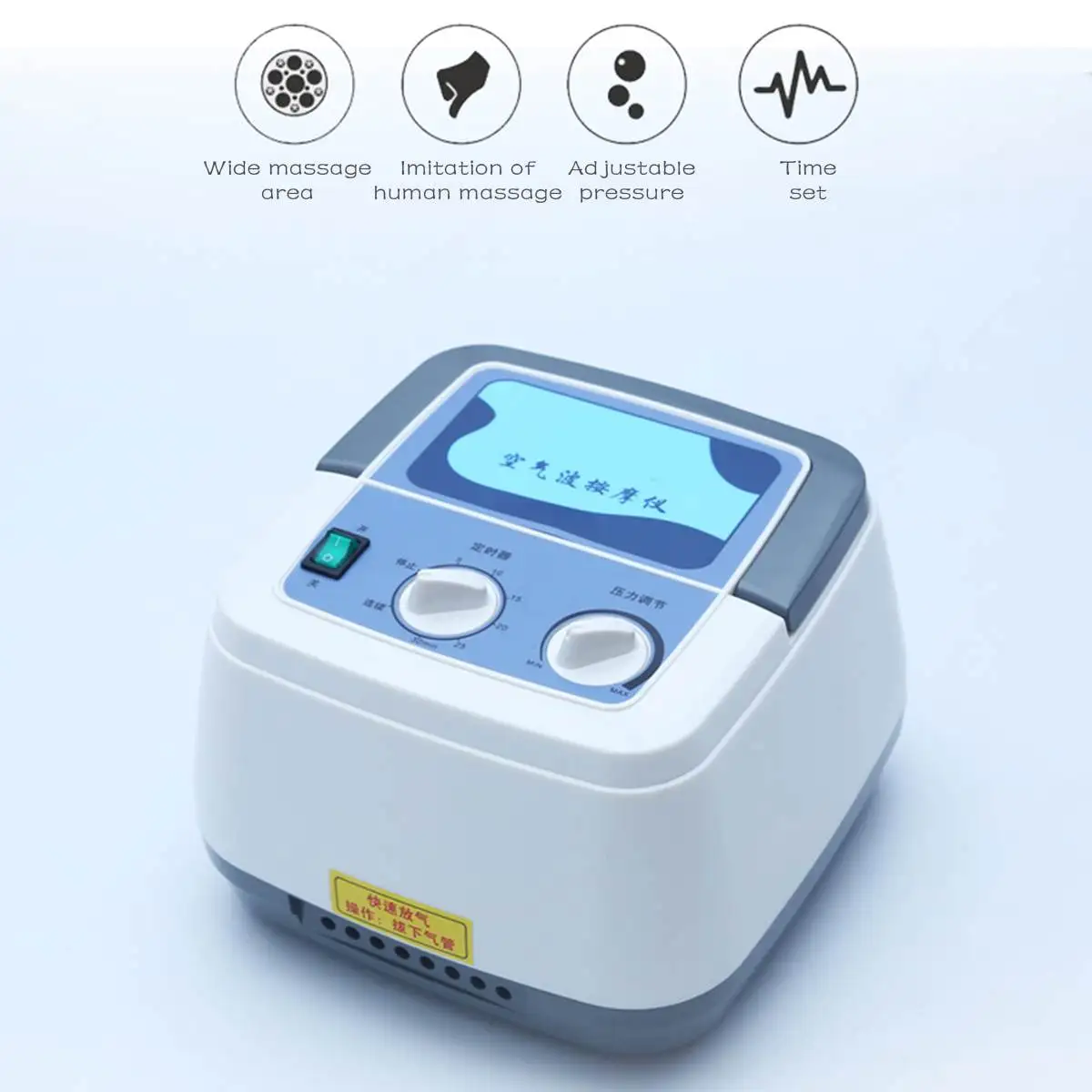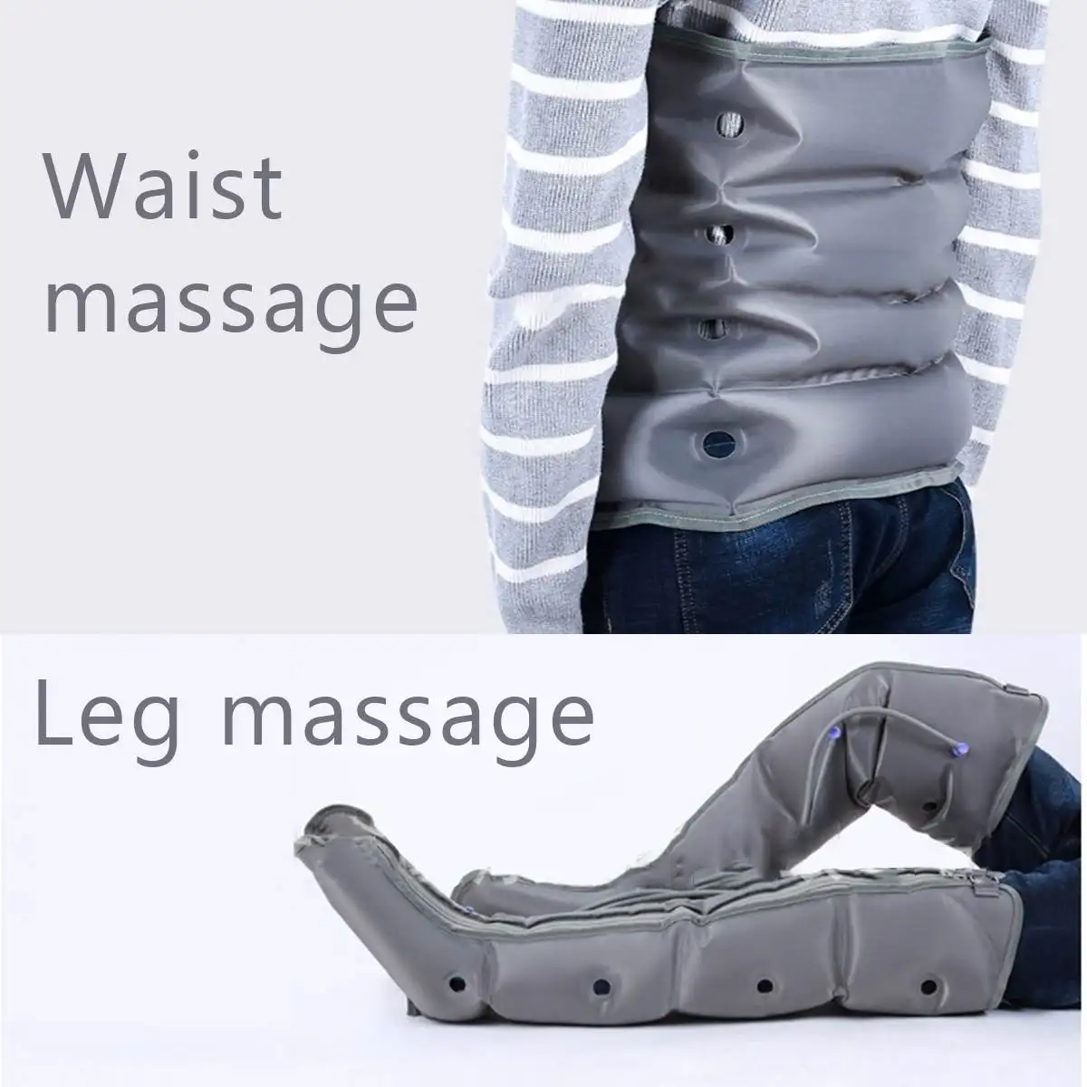 Особенности:◆ Дизайн 4 воздушных камер. Обеспечивает более комфортный массаж.◆ Дышащий дизайн с отверстиями.◆ Высокопроизводительный Мощный двигатель. Ткань ТПУ, мягкая и удобная.◆ Можно массировать и расслабить ноги, руки и талию.◆ Простое и простое управление.