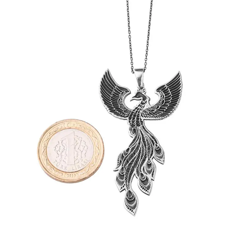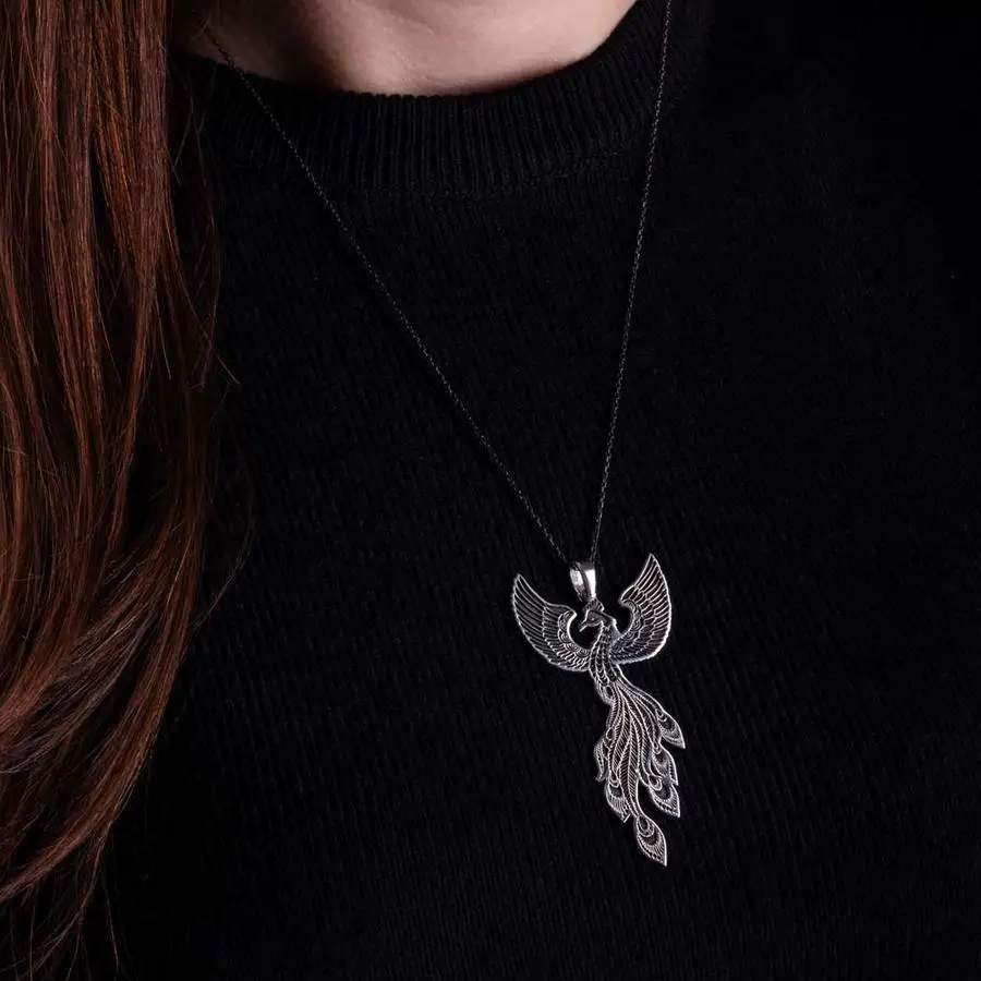 Женское ожерелье из серебра 925 пробы, с изображением Феникса