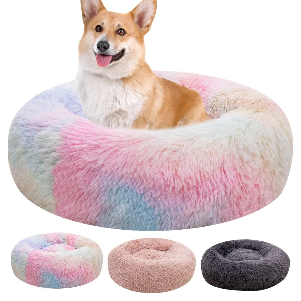 Теплая плюшевая подстилка для собаки, Успокаивающая Лежанка для сна, круглая подстилка для собаки, длинная плюшевая зимняя подстилка для домашних животных, подстилка для кошки, подстилка для щенка, собаки