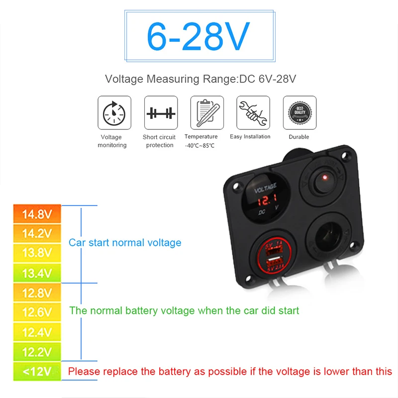 Прикуриватель для автомобильной лодки поддерживает функцию монитора напряжения, которая может эффективно показать вам напряжение автомобильного аккумулятора через экран и обеспечить безопасность вождения.