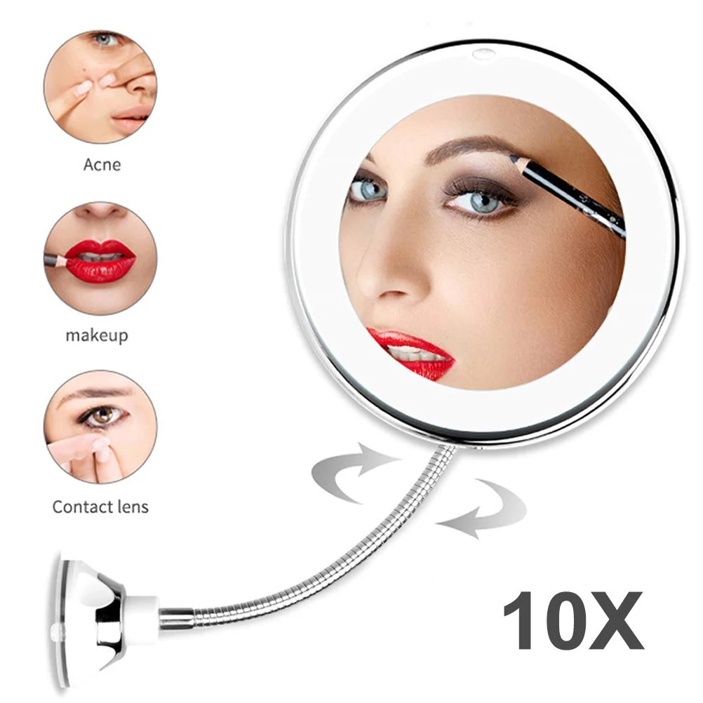 Зеркало для макияжа со светодиодсветильник подсветильник кой, гибкое увеличительное зеркало с 10-кратным увеличением, светильник ческое зеркало, Прямая поставка