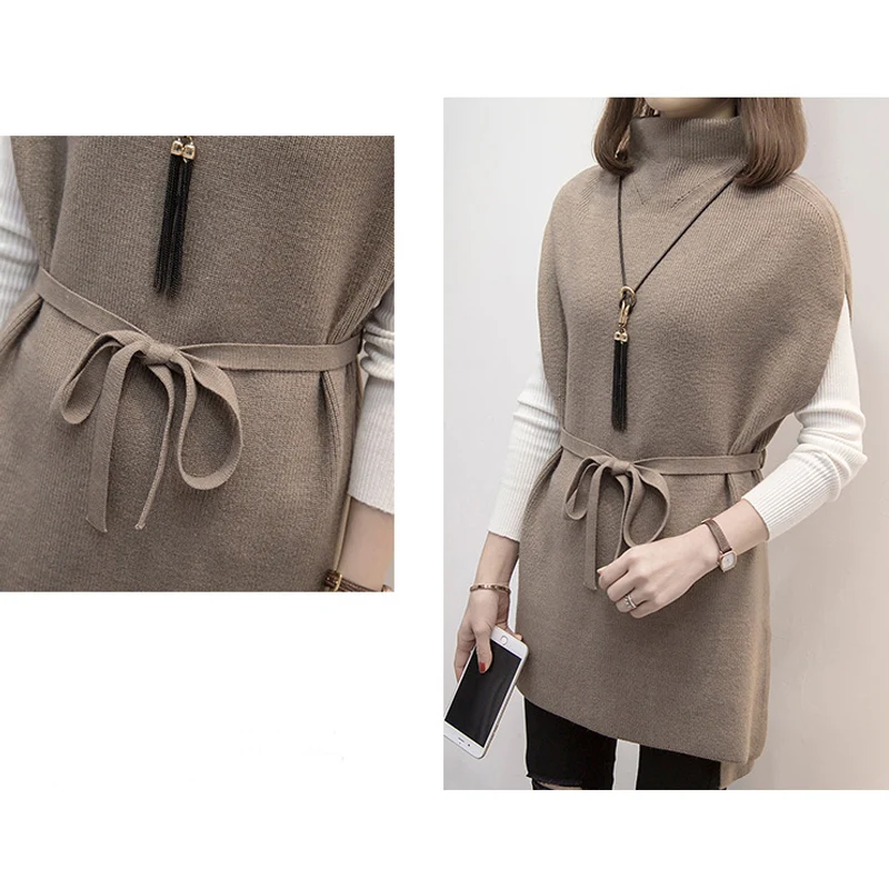 Зимний женский свитер, женский свитер 2021, вязаный свитер с высоким воротником и поясом, женские Пуловеры, свитеры, топы E474