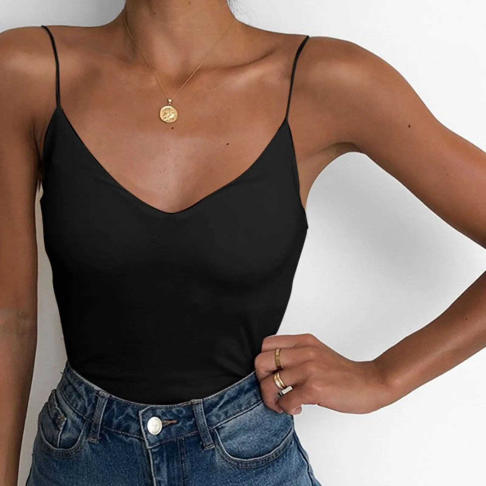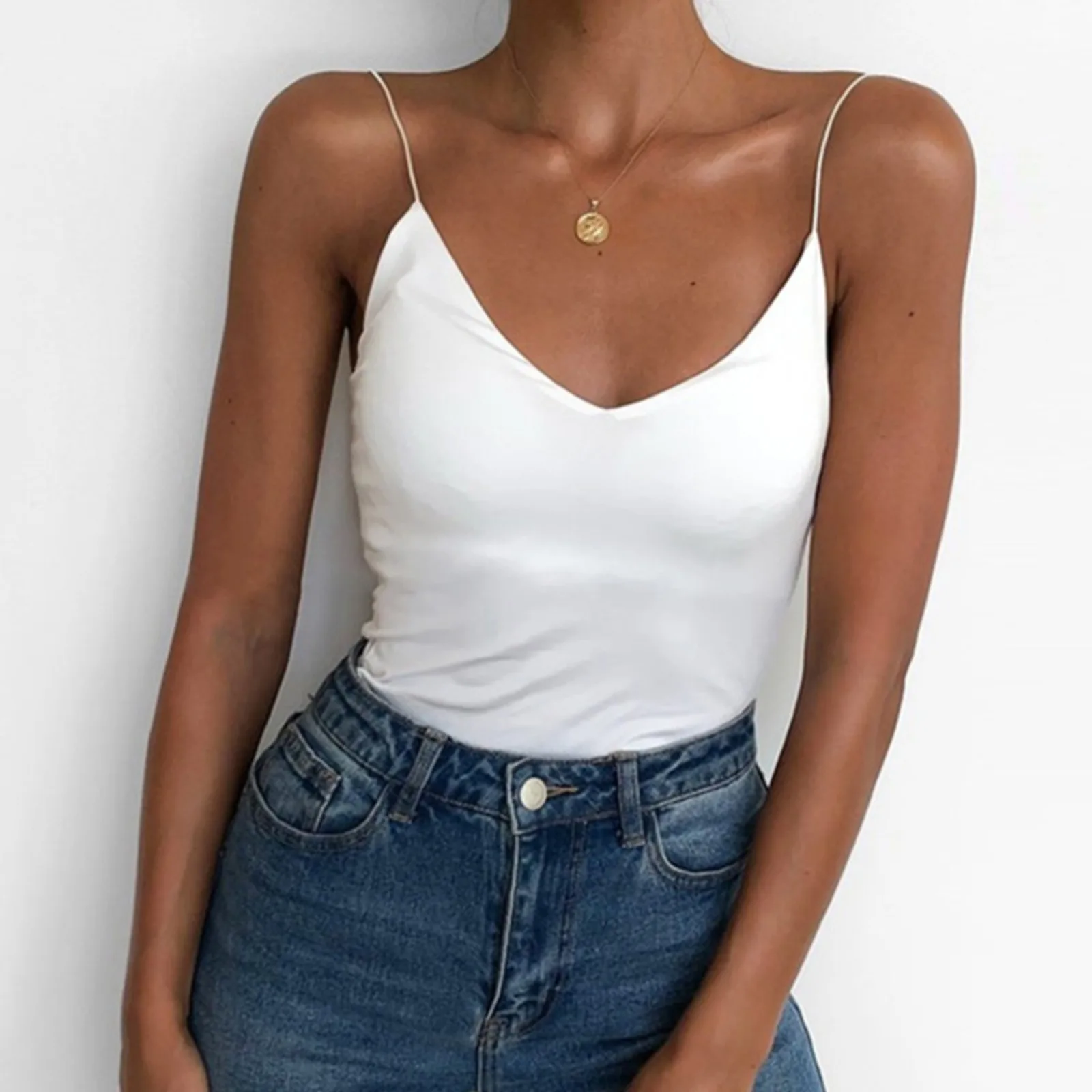 Атласная женская тонкая камисоль, однотонный жилет, женские майки, ...