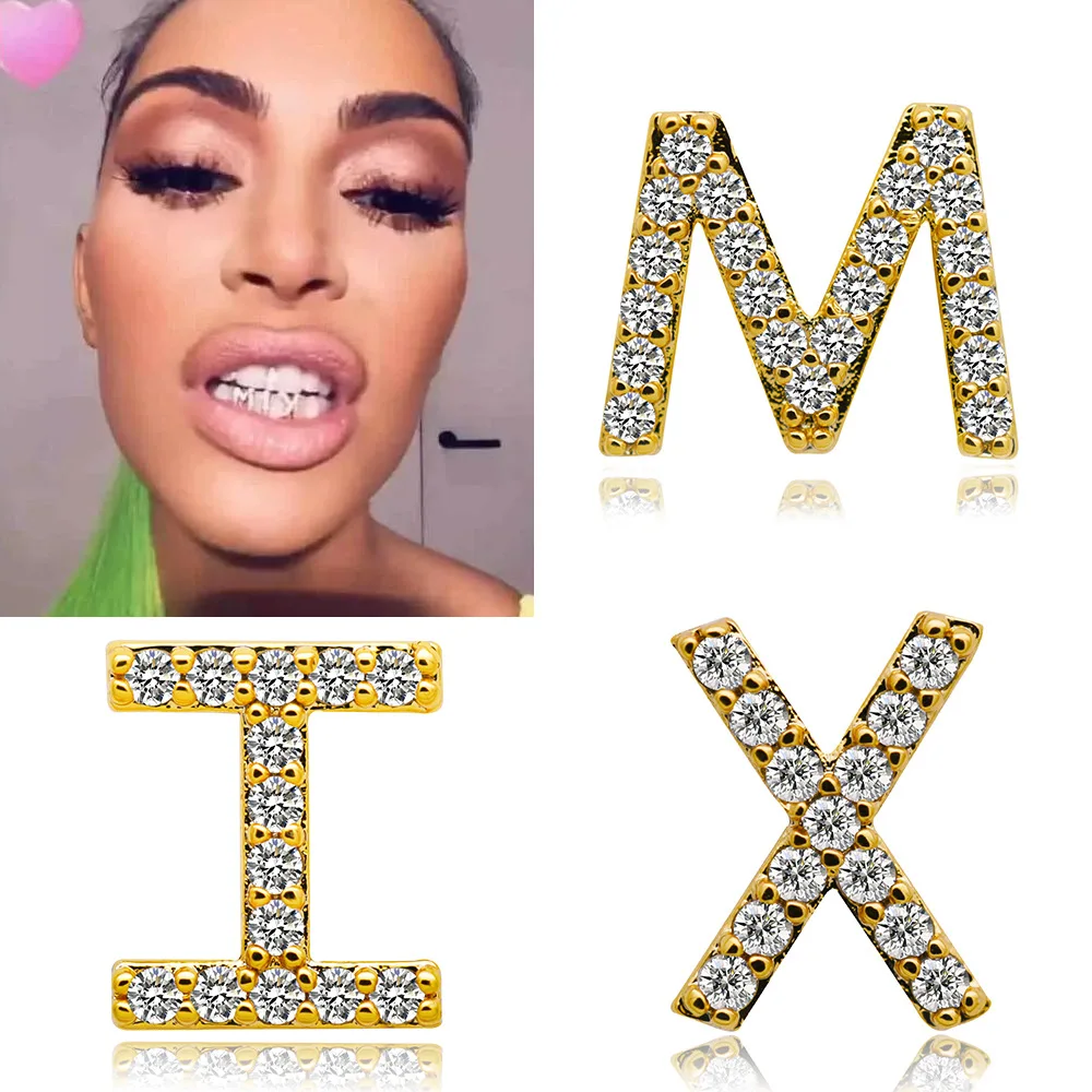 В стиле хип-хоп 26 букв золото Цвет декоративные Зубные коронки льд...