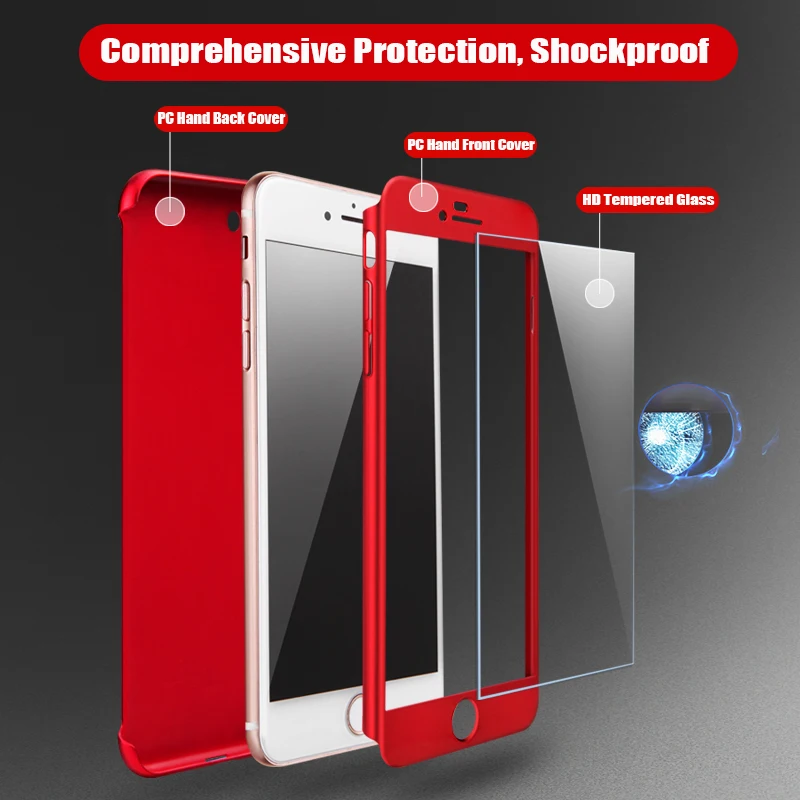 Чехол для телефона с полным покрытием 360 градусов для iPhone 12 6S 5S 7 8 Plus 11 12 Pro XS Max XR, защитный чехол для iPhone 6 XR X SE, чехол со стеклом