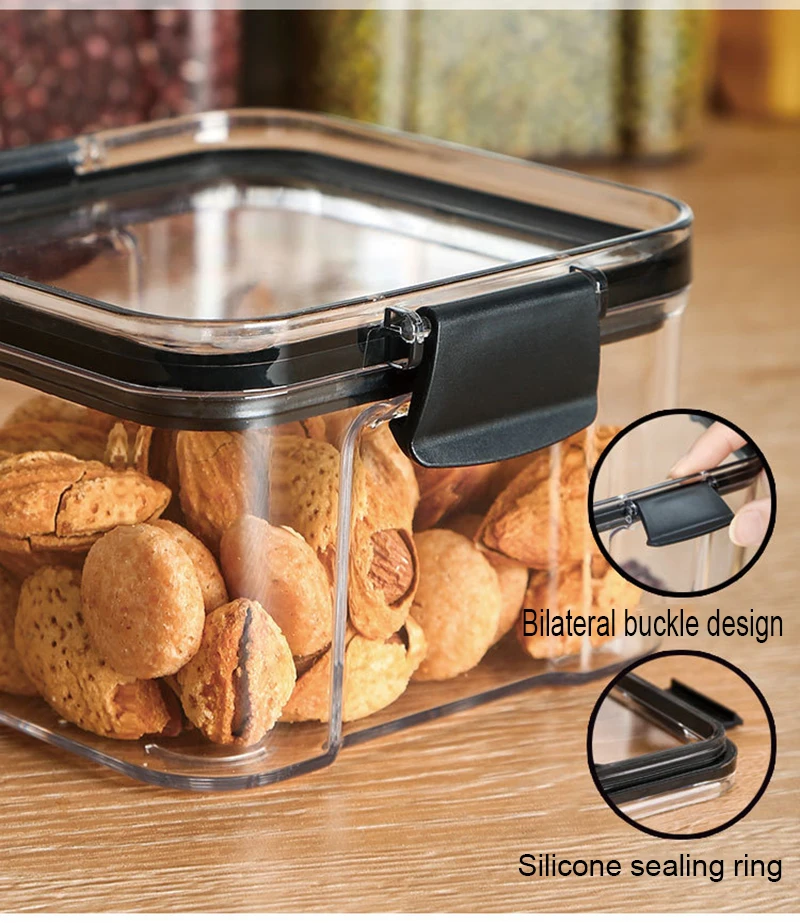 Герметичный контейнер для хранения пищевых продуктов, герметичный контейнер для хранения пищевых продуктов объемный контейнер для продуктов, квадратный кухонный бытовой влагостойкий многозернистый контейнер для закусок и орехов