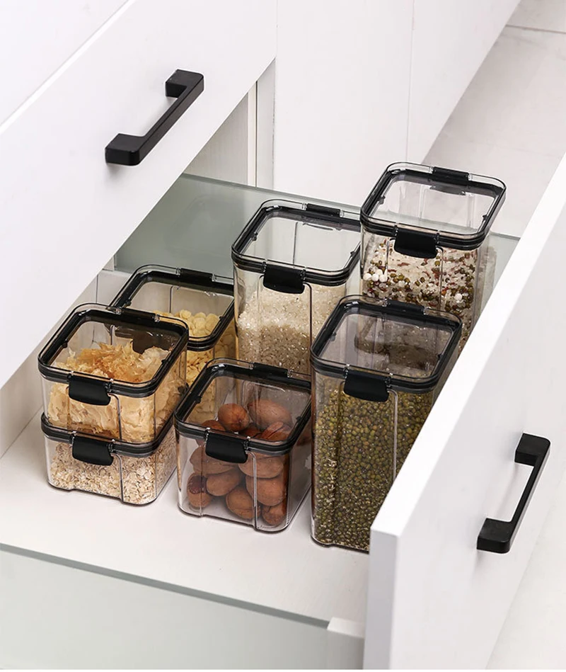 1. Отлично подходит для хранения всего от хлопьев, риса, муки, сахара, крекеров, закусок, чипсов до пасты, лазаньи, лапши спагетти.2. Полный ассортимент размеров и контейнеров для ваших ежедневных нужд. Каждый контейнер для хранения оснащен Воздухонепроницаемой 2-сторонней системой фиксации, которая обеспечивает водонепроницаемое и герметичное уплотнение, сохраняя ваши зерна супер свежими.3. Корпус прозрачных контейнеров для хранения достаточно прочен для длительного использования, вы можете быстро увидеть то, что внутри, просто с первого взгляда. Эти контейнеры также имеют Штабелируемый и модульный дизайн, что позволит вам сэкономить много места в холодильнике, морозильной камере или шкафах для лучшей организации кухни.4. Вы можете тщательно очистить контейнеры для хранения макарон, просто удалите силикон, прикрепленный вдоль крышки контейнера и промойте водой с мылом и краску. Снова оберните силикон вокруг крышки и запечатайте обратно, чтобы снова использовать.