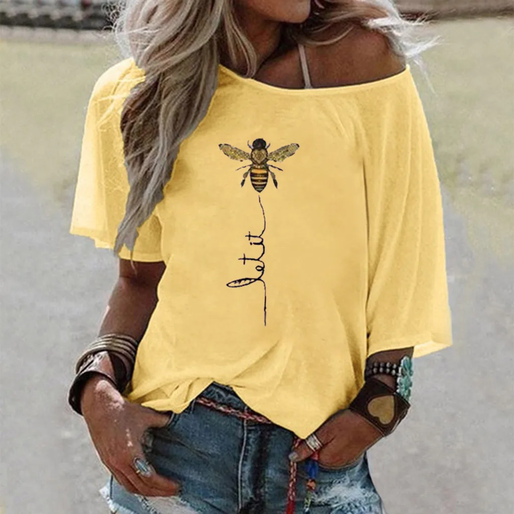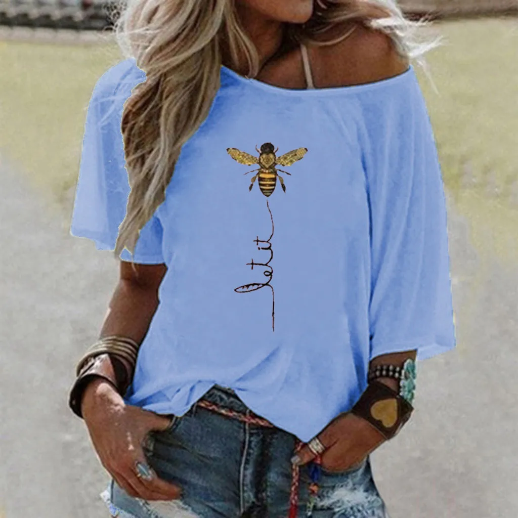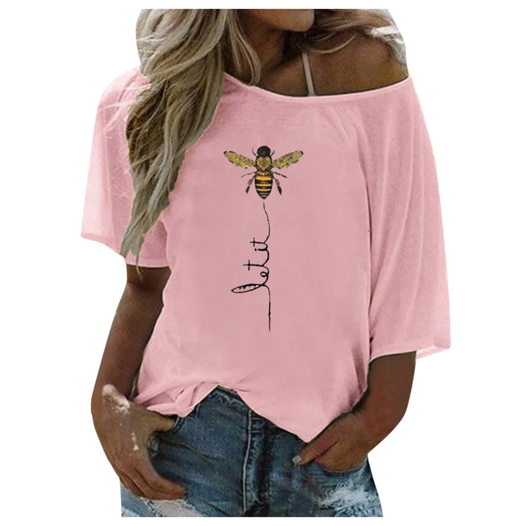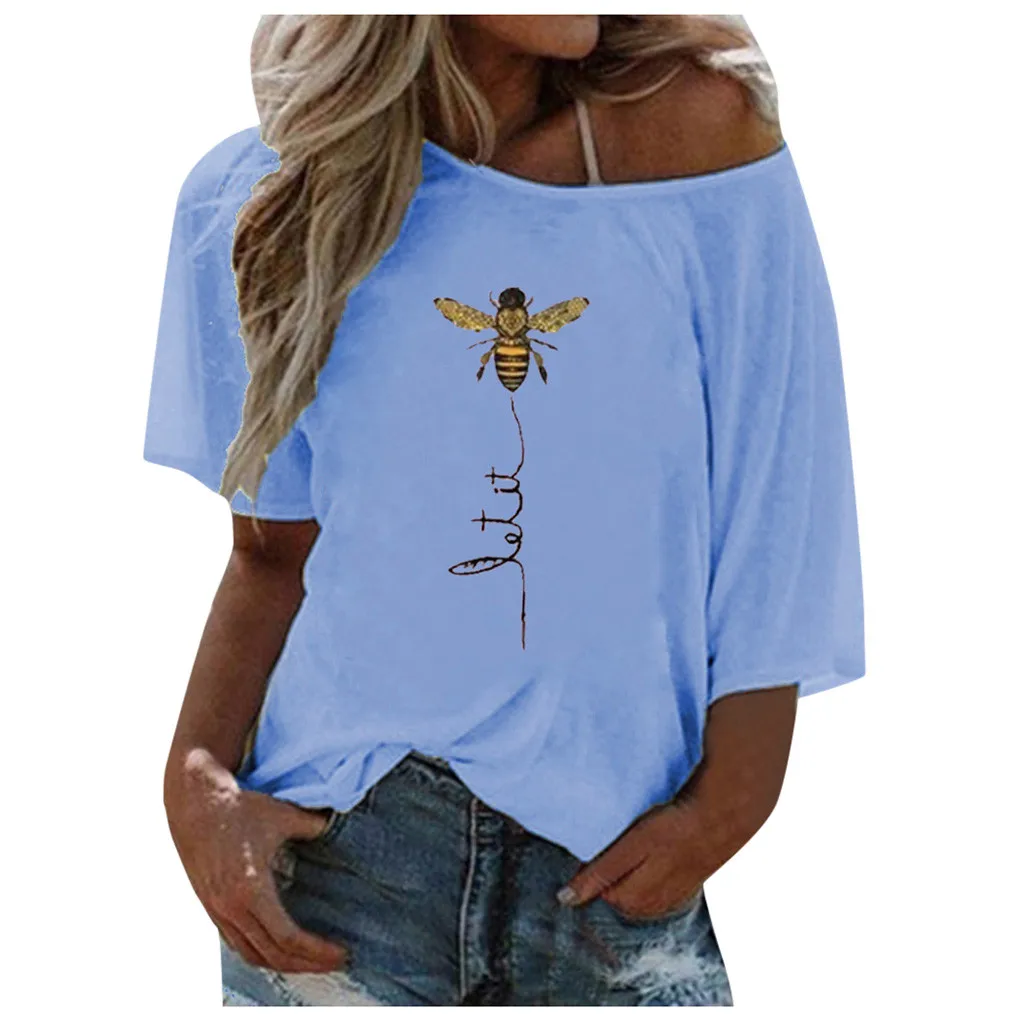 Женские блузки размера плюс женская блузка на одно плечо пчелы печатных футболка Топ летняя блузка, Blusas Mujer De Moda 2020