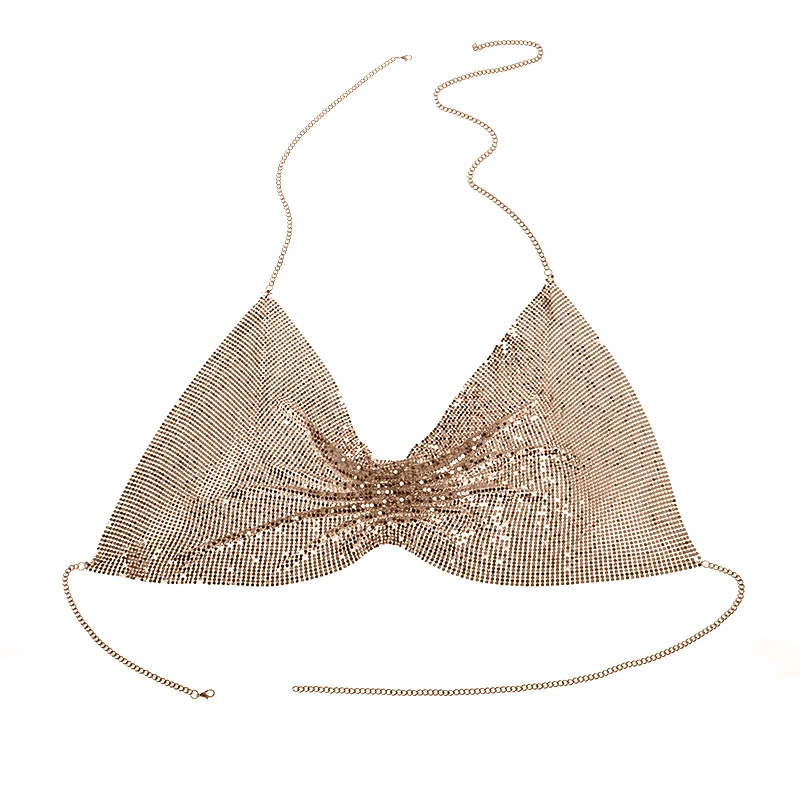 Модная сексуальная металлическая цепочка с блестками, аксессуары для бикини, летняя мода, пляжный бюстгальтер с блестками, цепочка, бюстгальтер, ожерелье для одежды